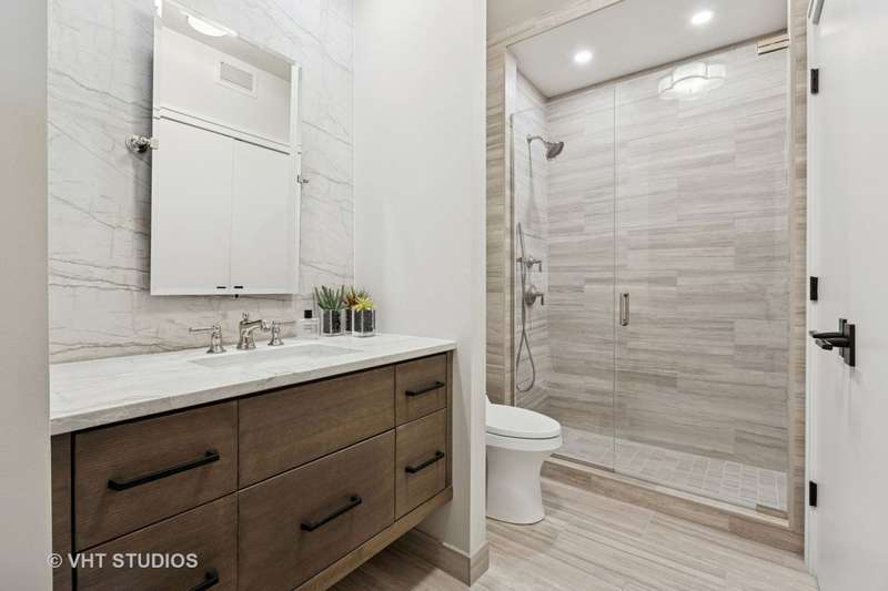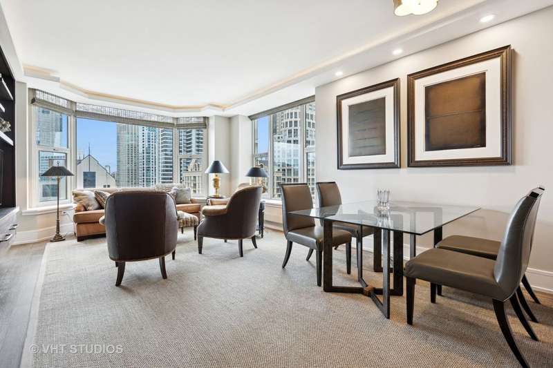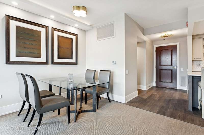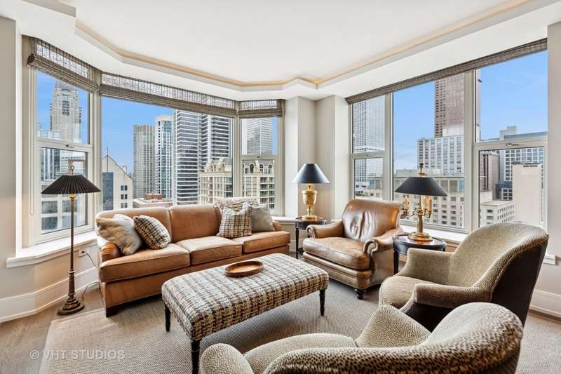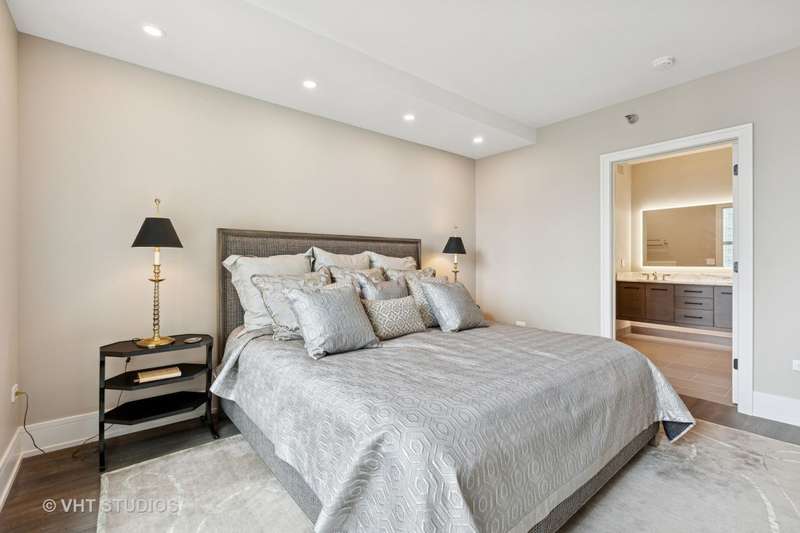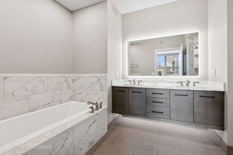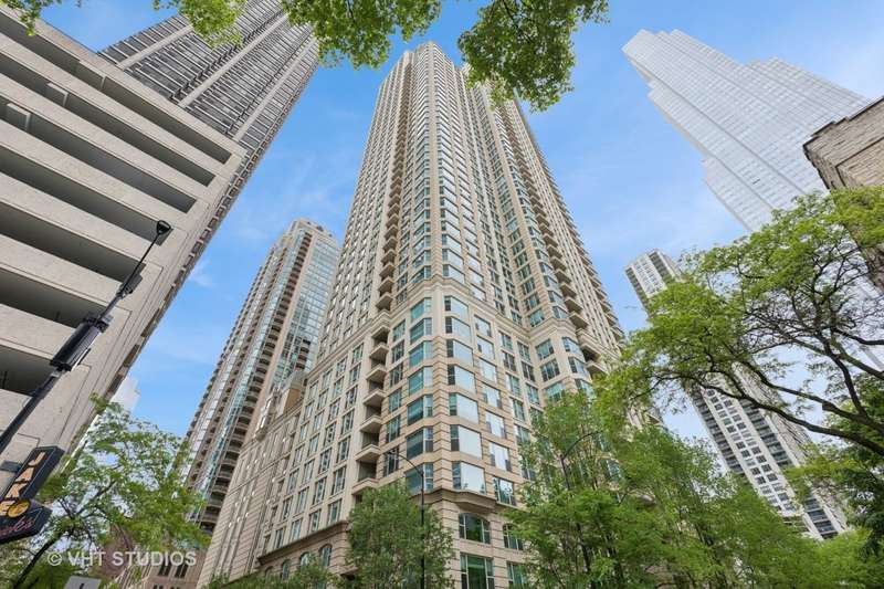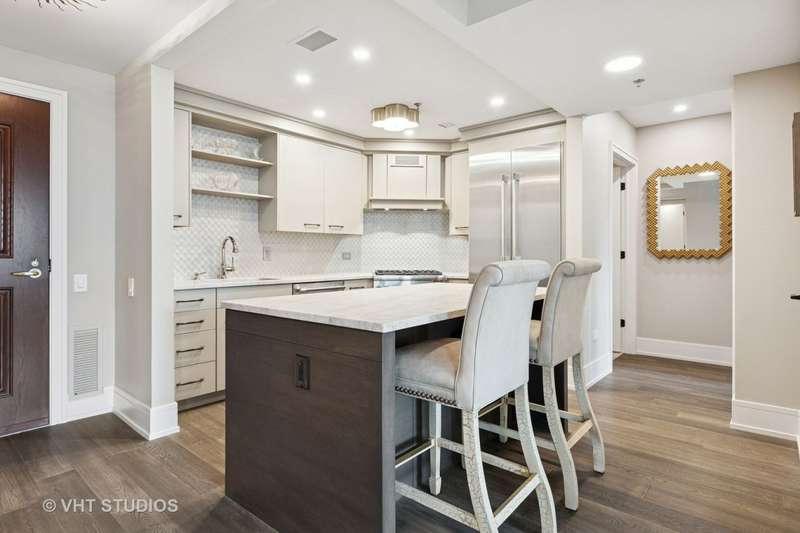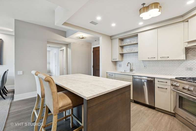 Step into timeless sophistication with this meticulously renovated 2-bedroom, 2-bathroom residence at The Fordham-one of Chicago's most prestigious luxury addresses. This home offers sweeping north and east exposures with views of Holy Name Cathedral and Lake Michigan. A private balcony with sweeping views of the city. The current owners collaborated with an interior designer and architect to execute a comprehensive, no-expense-spared transformation. At the heart of the home is a show-stopping custom kitchen, featuring handcrafted cabinetry, Taj Mahal leathered quartzite countertops, an Ann Sacks piano tile backsplash, and a full suite of Thermador appliances. All new plumbing fixtures, garbage disposal, and a top-of-the-line LG tower washer/dryer ensure modern functionality. Throughout the residence, engineered hardwood flooring and polished nickel Kohler fixtures complement the elevated finishes. All doors have been replaced and fitted with Emtek Lucerne hardware. Custom millwork and baseboard add architectural richness, while all-new window treatments-including a custom silk shade on the patio door-enhance the overall sense of luxury. Every surface has been refreshed. The living room is anchored by a contemporary gas fireplace with a fossilized limestone surround and integrated built-ins, including a dedicated wine cabinet-ideal for entertaining. Tray ceilings with custom soffit lighting define the living room, kitchen, hallway, and primary suite, adding warmth and dimension. All lighting has been updated to statement fixtures. The primary suite is generously sized to accommodate a king bed and features dual Elfa-organized closets. Its ensuite bath is clad in polished Carrera marble and includes dual vanities, premium lighting, and custom under cabinet lighting. The second bedroom offers versatility as a guest room or home office, while the adjacent bath stuns with a dramatic quartzite vanity wall, custom cabinetry, and spa-quality finishes. This ideal split floor plan offers privacy between bedrooms. This unit includes a private storage unit in a full-amenity building: 24-hour door staff, pool, gym, theater, wine cellar, humidor, and more! Storage locker #422 and parking space P-729 included in the price.