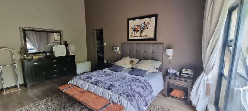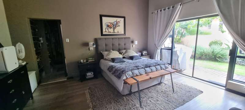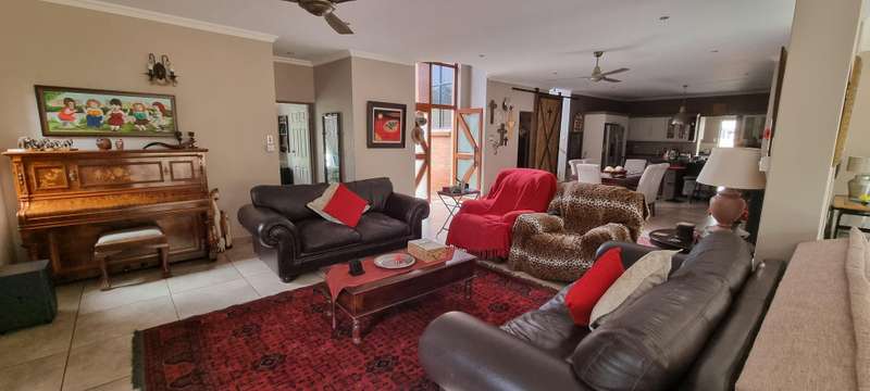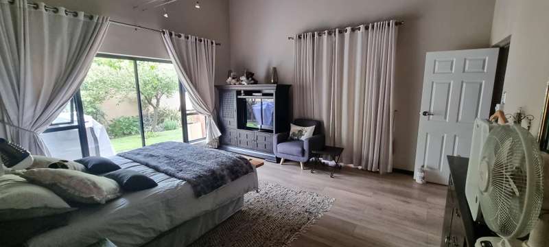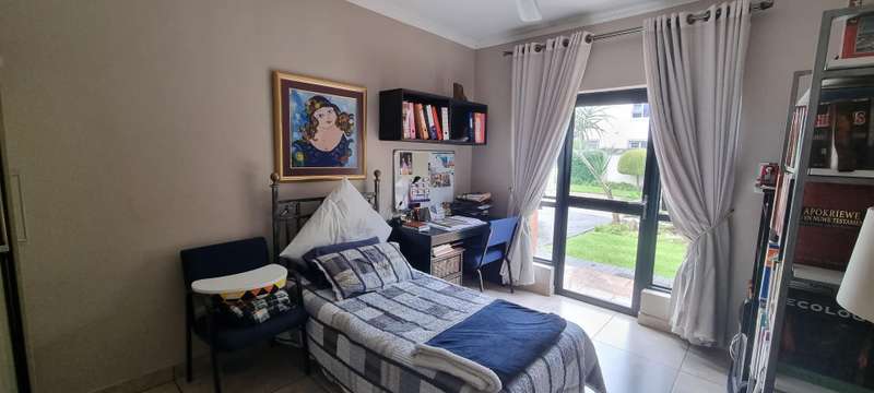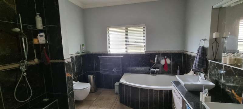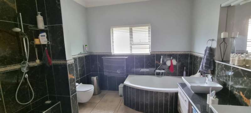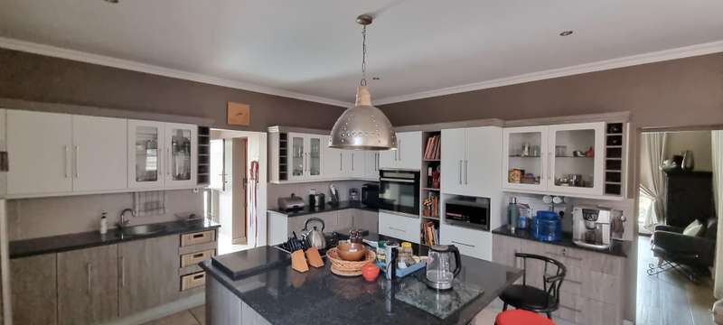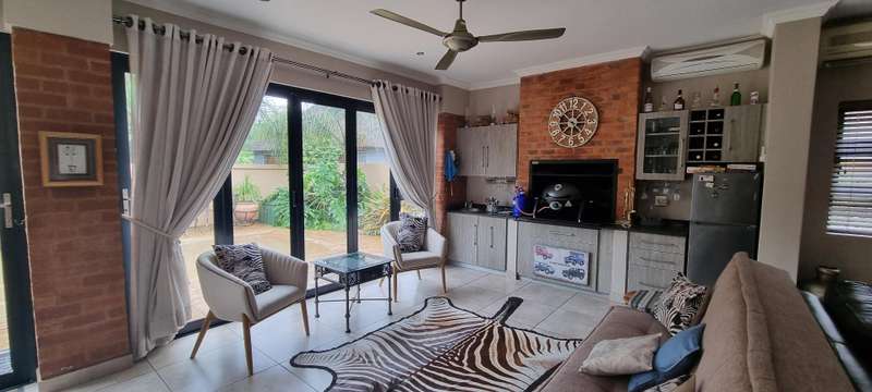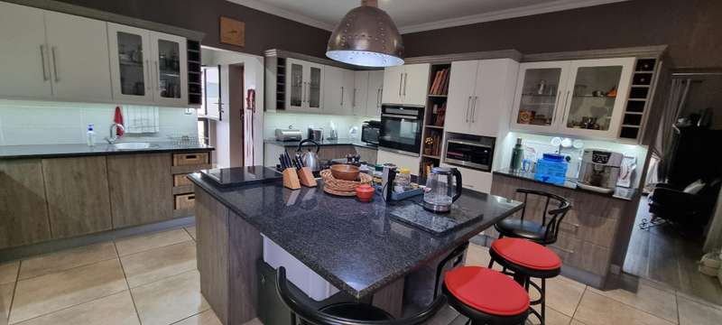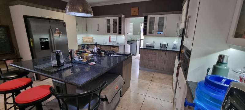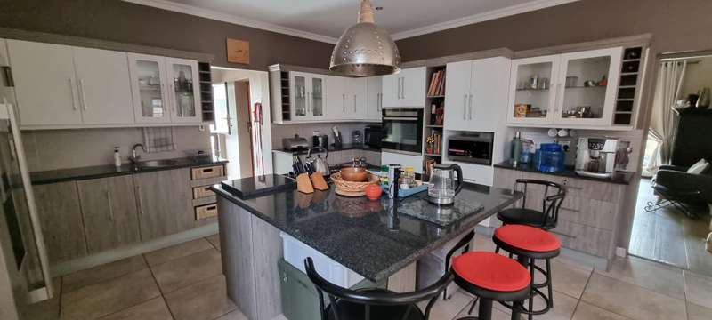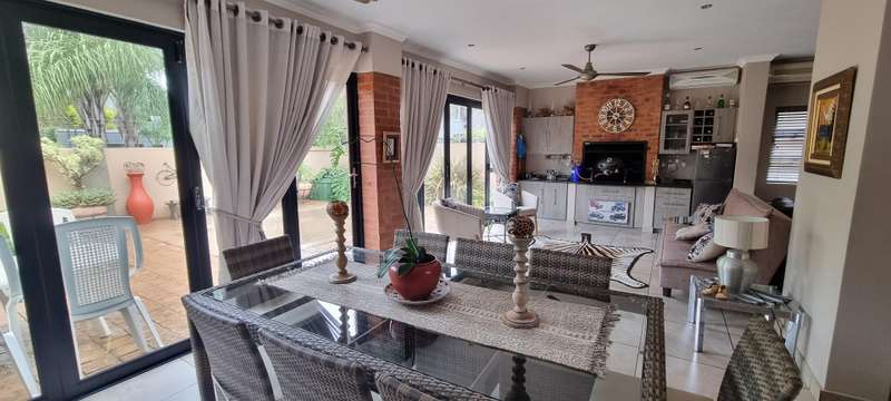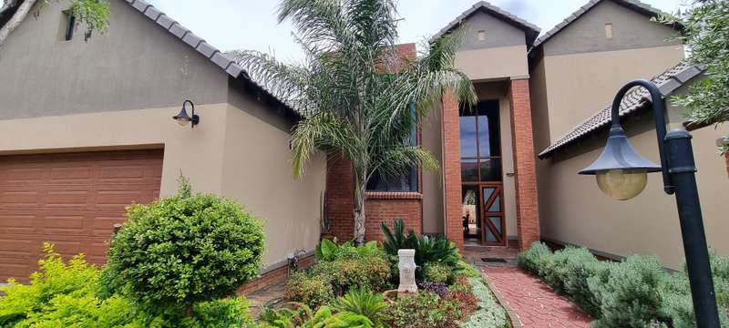 4 bedroom with 3 bathroom Home for sale in Estate Practical Perfection! This modern double-story home ticks all of the boxes. As you walk into the open-plan ground floor it is a stunning vision. The family room, lounge, dining room, and entertainment area are all connected, and look out onto the swimming pool. With two larger-than-normal bedrooms on the ground floor, one of which has an en-suite. The top floor has amazing views, 2 bedrooms, a full bathroom, and a kitchenette. The kitchen is finished modern and boasts a separate scullery, pantry, ample cupboard space, gas hob, soft closing cupboard and drawers, and granite center island. The Entertainment room oozes luxury, with stacking doors that fully open up to a built-in braai with a perfectly manicured garden and a sparking swimming pool Additional Features: * 2000l JOJO tank for irrigation. * The entire estate is supplied water via a designated borehole, saving you some money on your water utility. * Levies R350 * Walking distance from the Dam * Sought after and secured Estate * Separate extra height carport * Storage/Toolroom * Centralized in Melodie, in close proximity to all amenities Call today to book your viewing!