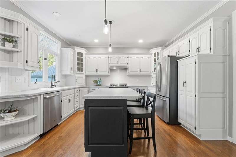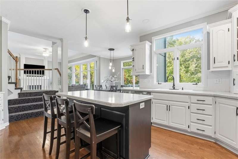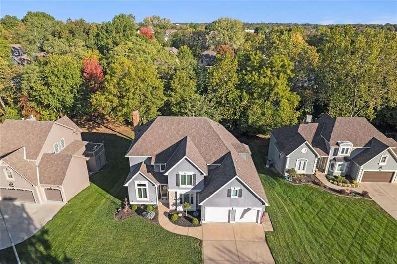 Beautifully Updated 2-Story in Coveted Riss Lake!Perfectly positioned on a quiet cul-de-sac, this home offers the ideal blend of comfort, style, and thoughtful updates throughout.The main floor features an open layout with seamless flow between living, dining and kitchen spaces. The living room features a cozy fireplace and tons of natural light from the floor-to-ceiling windows. The spacious kitchen offers wrap-around counters and cabinetry, a large island, built-in hutch, and an open dining area that leads out to the upper deck perfect for entertaining. The main floor is completed by a formal dining room, private home office, and a convenient laundry room just off the garage, thoughtfully designed for everyday ease.The upstairs primary suite enjoys its own elevated, private level and includes a walk-in tiled shower, jetted tub, and dual vanities. Each of the three secondary bedrooms includes a walk-in closet and convenient bathroom access, with one offering a private ensuite and the other two sharing a Jack-and-Jill bath.Designed for entertaining, the finished lower level features a spacious family room with fireplace and custom built-ins, open rec space, and a wet bar. A full bath and walk-out access to the patio and tree-lined backyard complete this beautiful extension of the home.Additional highlights include a 3-car tandem garage and beautiful mature trees surrounding the property. Enjoy the exceptional Riss Lake community with lake access, pools, tennis courts, and trails all from a peaceful cul-de-sac location.