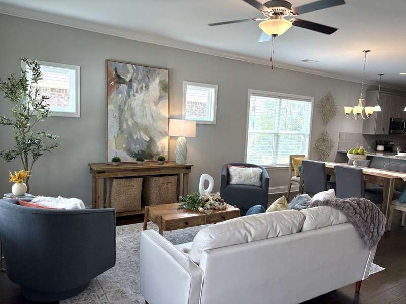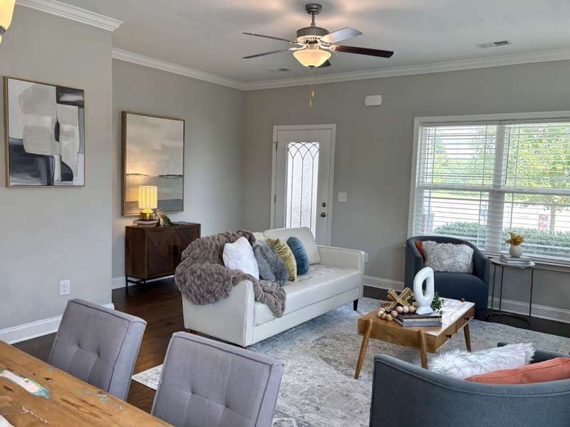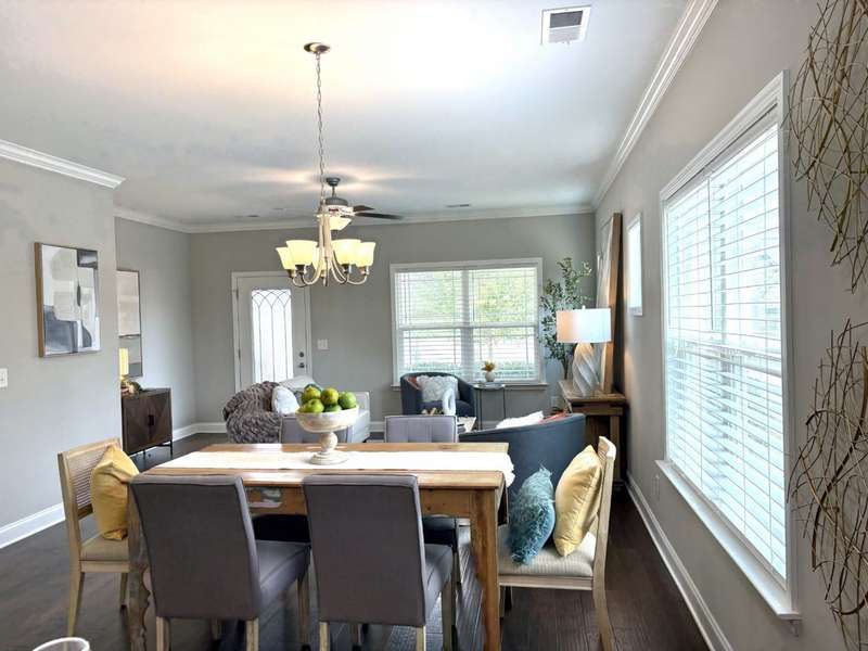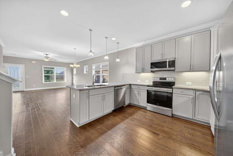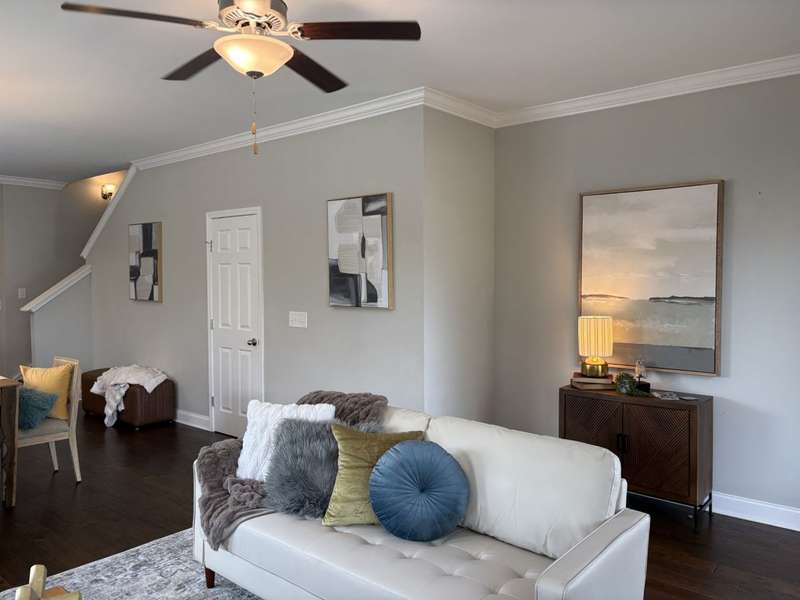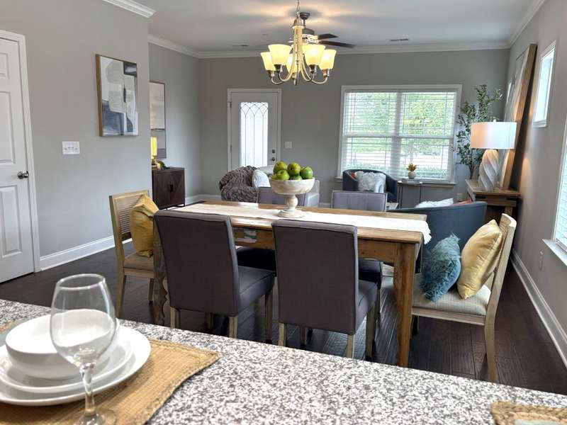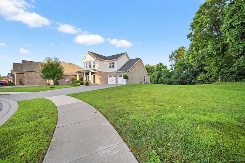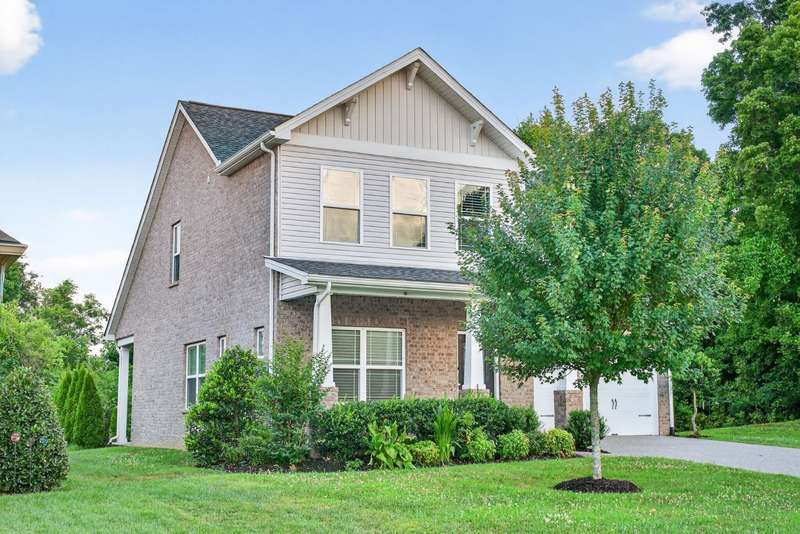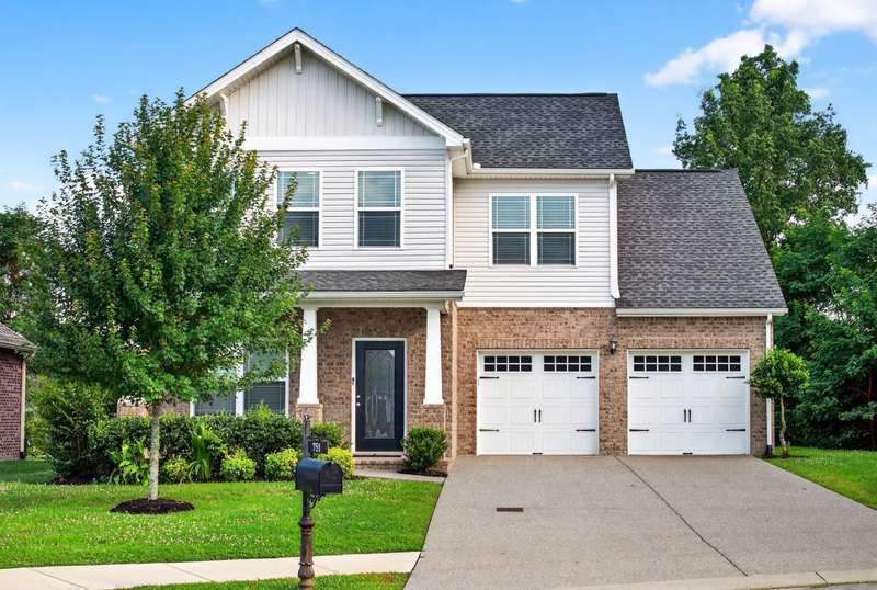 Welcome to this stunning one- owner home, offering four bedrooms 2 1/2 baths, and a spacious two-car garage, ideally situated on a quiet cul-de-sac in the highly sought after Valley Brook and Creekside at Stonebridge subdivision. Nestled on a picturesque lot, this home backs up to green space and enjoys additional green space to the right providing a peaceful and private setting.As you approach, the inviting covered front porch welcomes you home. Step inside to a thoughtfully designed open floor plan filled with natural light from an abundance of windows. The living room features rich engineered hardwood flooring that flows seamlessly into the dining area and kitchen, creating a warm and connected living space perfect for everyday living and entertaining.The kitchen is a true delight, showcasing beautiful cabinetry, granite countertops, a stylish tile backsplash, and stainless-steel appliances-including a smooth- top range, oven, dishwasher, microwave, and refrigerator. 20 minutes to BNA airport!The main- level owner suite is a private retreat with an elegant custom ceiling, engineered hardwood floors, a generous walk-in closet, and a luxurious ensuite bath complete with tile flooring double vanities beautiful, tiled shower and a separate water closet.Also on the main level is a versatile second bedroom, ideal for guests or use as a home office, along with a beautifully finished half bath featuring hardwood flooring. The spacious laundry room located on the main level with tile flooring comes fully equipped with a washer and dryer for your convenience. Both are approximately 5 years old.Upstairs, you'll find a comfortable rec room with ample storage space along with two additional bedrooms that share a well-appointed full bath.Living in Stonebridge offers a beautifully designed clubhouse with meeting rooms, full kitchen, a catch and release pond, fitness center, a swimming area featuring a large pool, hot tub, patio spaces, kitty pool, playground.
