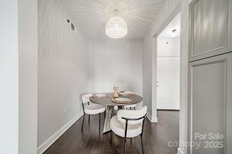 Beautifully updated condo in heart of Dilworth. Close to everything Charlotte is known for! Freedom Park, Uptown, South End, LoSo, SouthPark. Walk to Starbucks, Atrium, restaurants, shops and more! Recent updates to include; fully renovated bathroom with tile shower and rain head fixture, lovely vanity, gorgeous kitchen cabinets, all new lighting, new oven and new dishwasher. Custom cabinetry added in dining/office area. The entire condo has been freshly painted!! 1315 East condo has a gated parking garage, fitness center, spacious rooftop terrace, and two interior courtyards. Wonderful spaces for entertaining and relaxing! Building is concrete and steel construction. Don't miss the amenities on the 6th floor (rooftop terrace & fitness room).