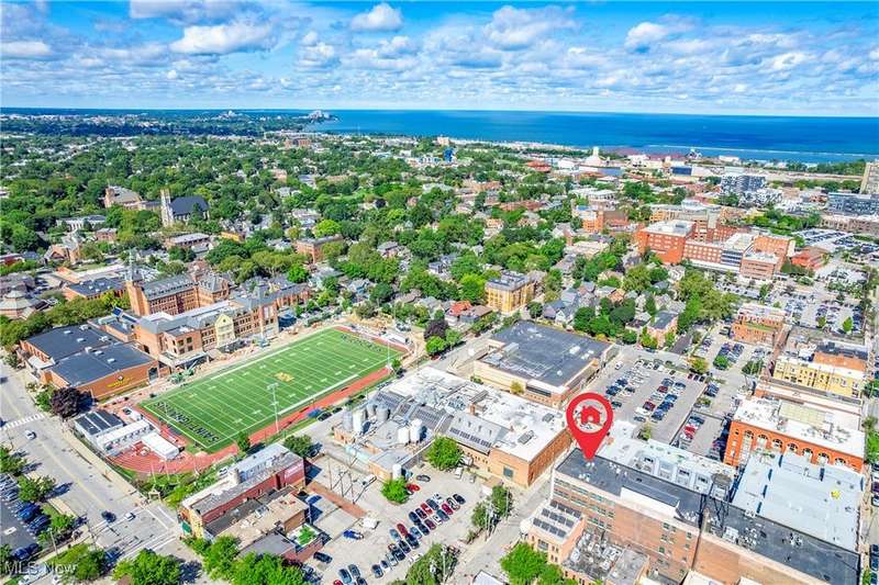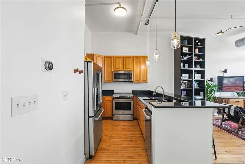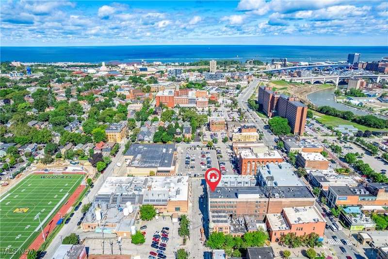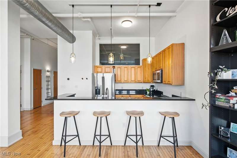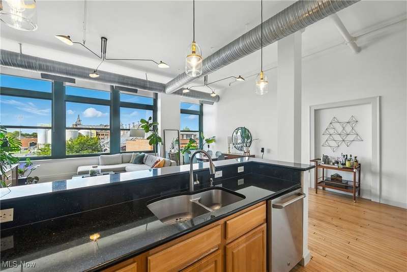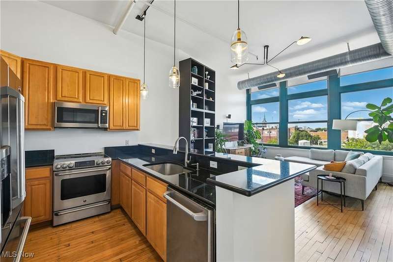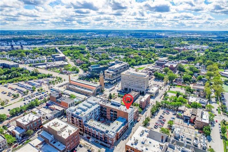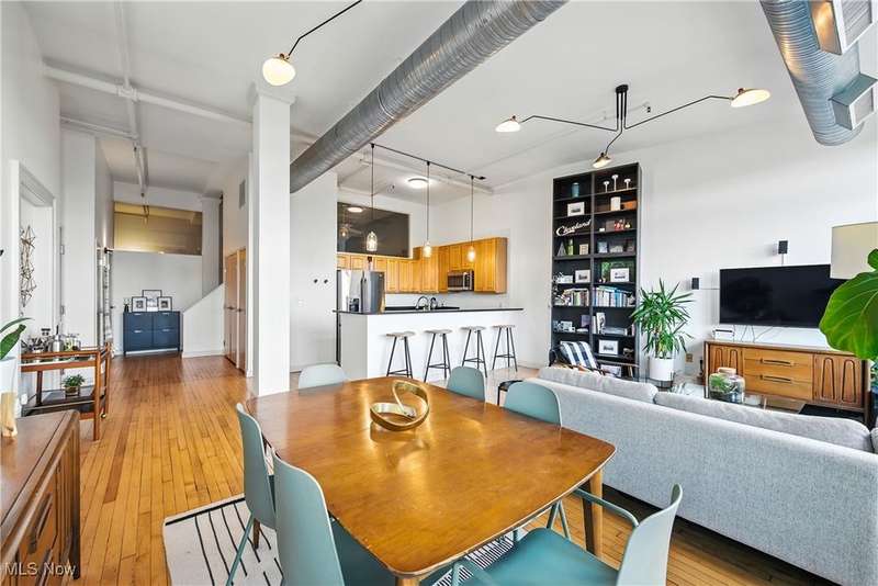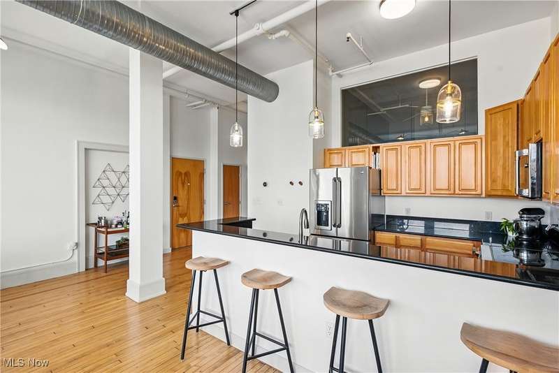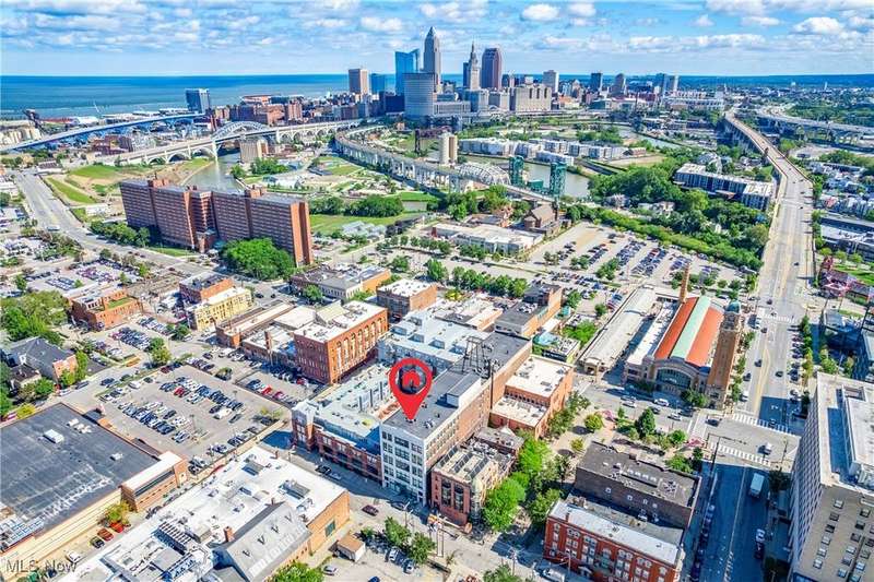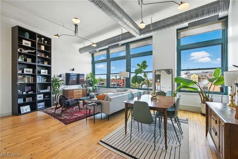 Welcome to Fries & Schuele, where the grandeur of a historic Cleveland department store meets the elegance of modern luxury living. This beautifully maintained 2-bedroom, 1.5-bath condo offers the perfect blend of modern style, historic character, and unmatched location. Enter and you're greeted by an open floor plan defined by original wood floors, exposed ductwork, and dramatic windows that flood the home with natural light and capture neighborhood views. The spacious living and dining areas feature flexible layout options, ideal for both everyday living and entertaining. The kitchen is well-appointed with granite countertops, stainless steel appliances, pendant lighting, and a convenient breakfast bar with seating. The primary bedroom offers a peaceful retreat with a walk-in closet and full bathroom. A versatile second bedroom is ideal for guests, a home office, or hobby space, while the added half bath and in-unit laundry make daily living effortless. Blending 19th-century charm with today's lifestyle, the building provides every modern amenity?fitness center, private storage and a landscaped courtyard. This residence is further distinguished by the rare benefit of two dedicated parking spaces in the secure heated indoor garage. The building's historic lobby showcases timeless architectural details while offering secure entry and a welcoming atmosphere. This premier location places you near the West Side Market, Market Square, and a vibrant selection of restaurants, breweries, and shops. Enjoy a morning coffee at a nearby cafe, shop for fresh produce at the market, or meet friends and family for dinner without ever needing to move your car. Downtown Cleveland, Tremont, Edgewater, and major highways are just minutes away, making commuting and exploring the city effortless. This is more than a home?it's a lifestyle. Don't miss your chance to own a piece of Cleveland history with all the modern comforts of today.