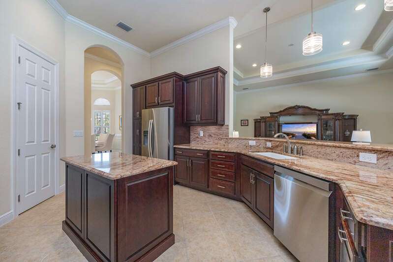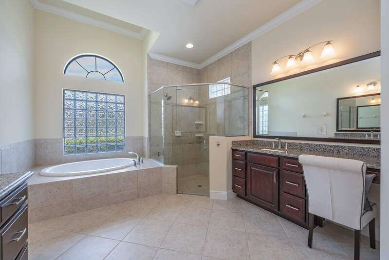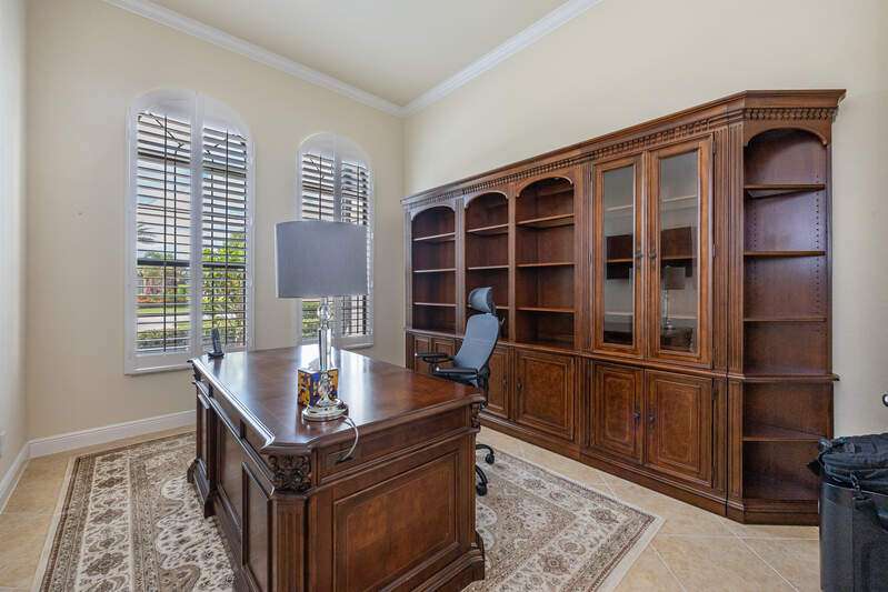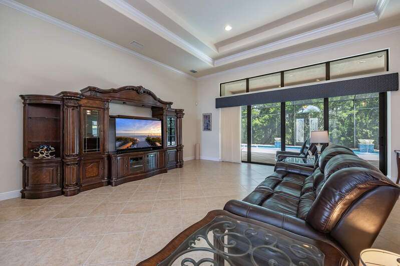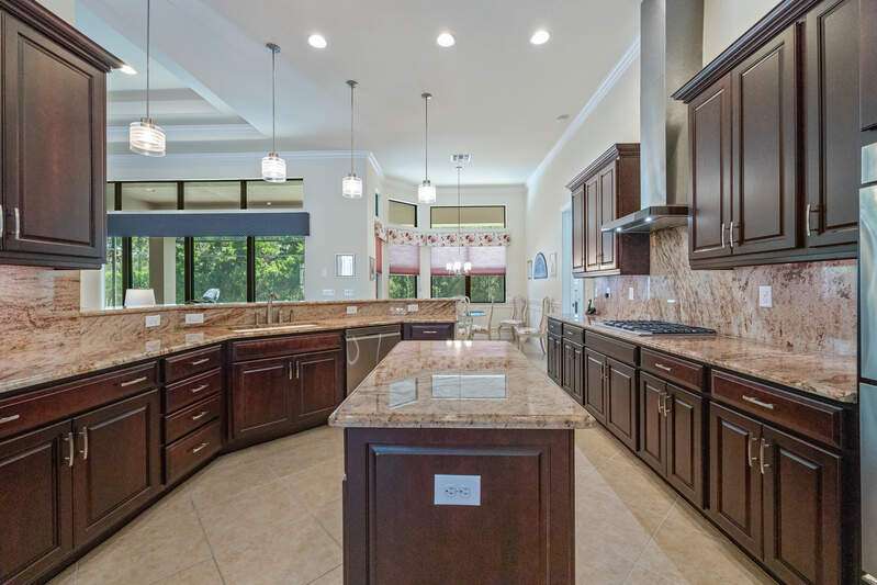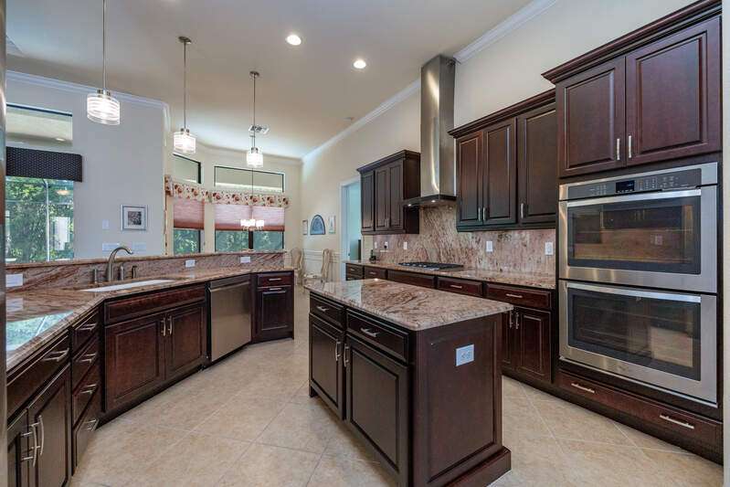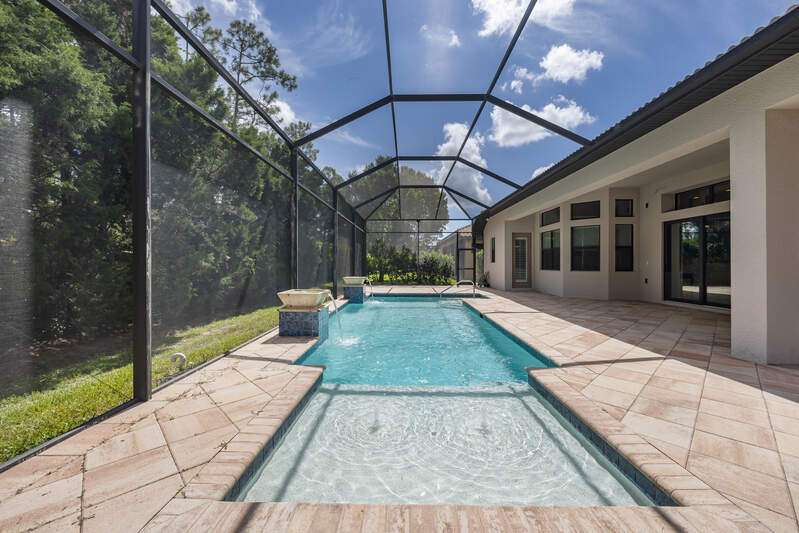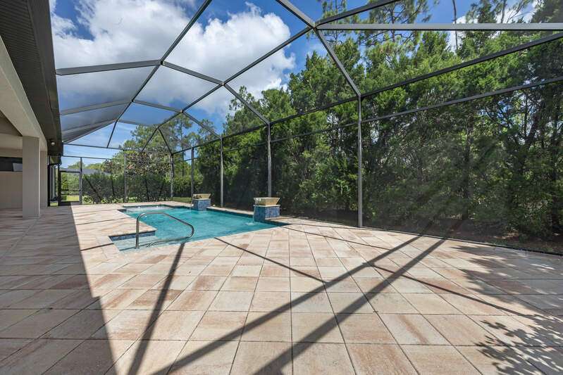 What an opportunity to own this beautiful Toll Brothers home in the amazing Bonita Lakes Community! This home backs up to a quiet and private preserve. The home has been well maintained, and is extremely spacious. This Aragon model offers 3 bedrooms, all with walk-in closets, 1 den/office, 3 full bathrooms and one half bathroom, boasting 3,127 square feet! The home offers 13' tray ceilings in the main room and custom wood working all throughout. The main suite and one of the guest rooms have direct access to the back lanai. The outdoor living space is over 1,800 sq. ft. with lot of space to entertain, swim or to just enjoy the peace and quiet of the preserve. The kitchen features double full-sized ovens, a gas cooktop, large counter space, a spacious island, and a walk-in pantry. The stainless steel appliances, bar seating, and an open breakfast room and great room, all make entertaining feel seamless. Crown molding and wainscoting all throughout. This home is equipped with impact windows and doors, a whole-house Generac generator, and a security system. The massive 3-car garage can accommodate large vehicles with space to spare. Bonita Lakes has amazing amenities such as a community pool, clubhouse with kitchen and social areas, exercise room, bocce courts, and tennis courts.