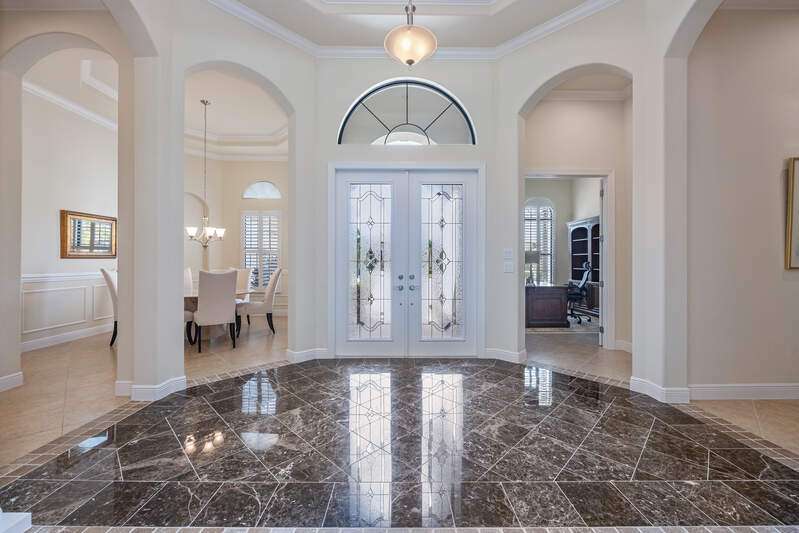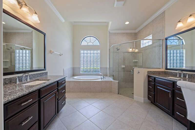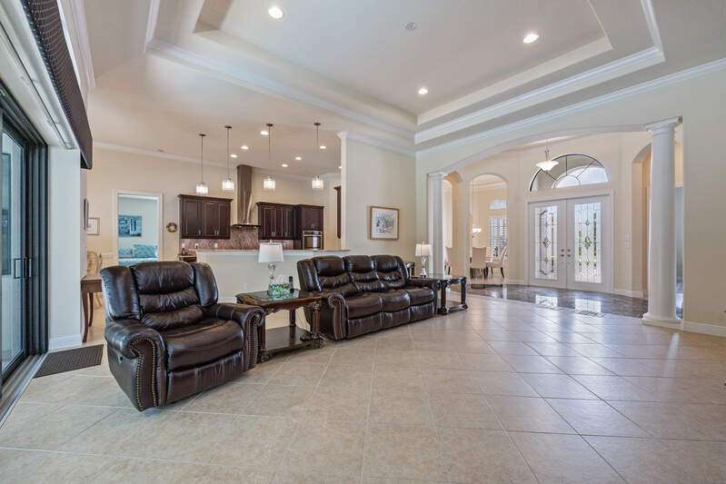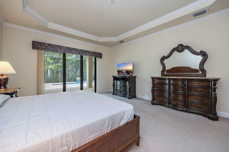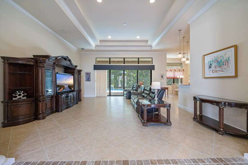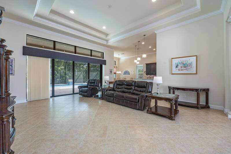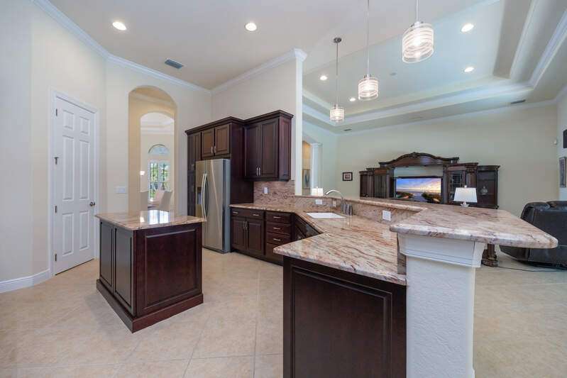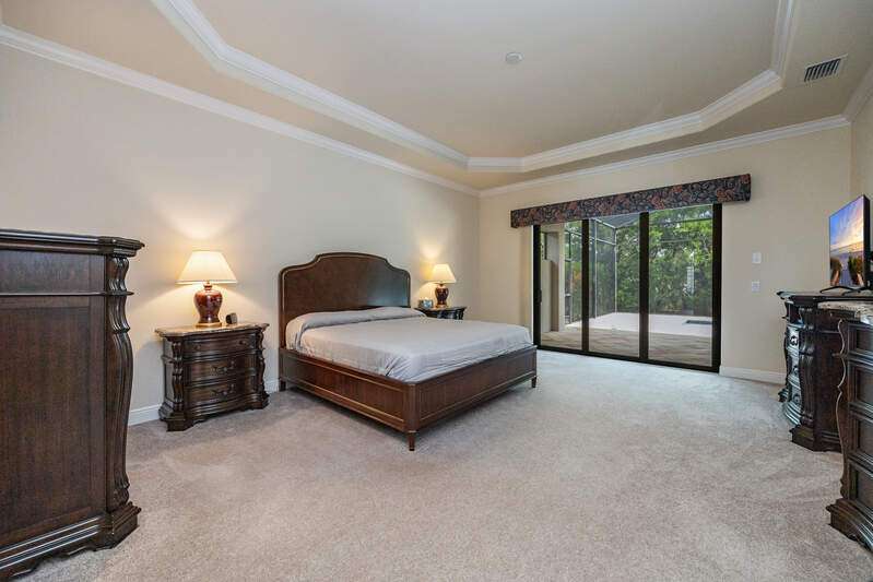 What an opportunity to own this beautiful Toll Brothers home in the amazing Bonita Lakes Community! This home backs up to a quiet and private preserve. The home has been well maintained, and is extremely spacious. This Aragon model offers 3 bedrooms, all with walk-in closets, 1 den/office, 3 full bathrooms and one half bathroom, boasting 3,127 square feet! The home offers 13' tray ceilings in the main room and custom wood working all throughout. The main suite and one of the guest rooms have direct access to the back lanai. The outdoor living space is over 1,800 sq. ft. with lot of space to entertain, swim or to just enjoy the peace and quiet of the preserve. The kitchen features double full-sized ovens, a gas cooktop, large counter space, a spacious island, and a walk-in pantry. The stainless steel appliances, bar seating, and an open breakfast room and great room, all make entertaining feel seamless. Crown molding and wainscoting all throughout. This home is equipped with impact windows and doors, a whole-house Generac generator, and a security system. The massive 3-car garage can accommodate large vehicles with space to spare. Bonita Lakes has amazing amenities such as a community pool, clubhouse with kitchen and social areas, exercise room, bocce courts, and tennis courts.