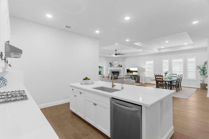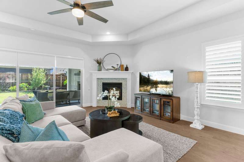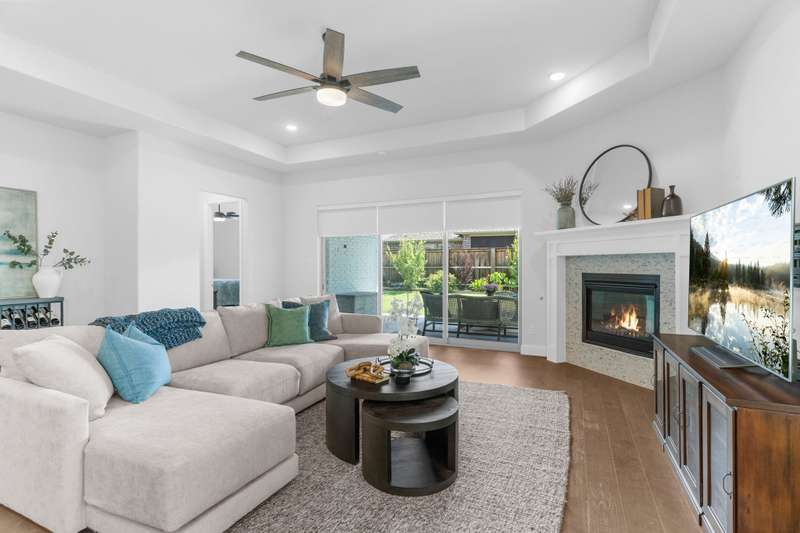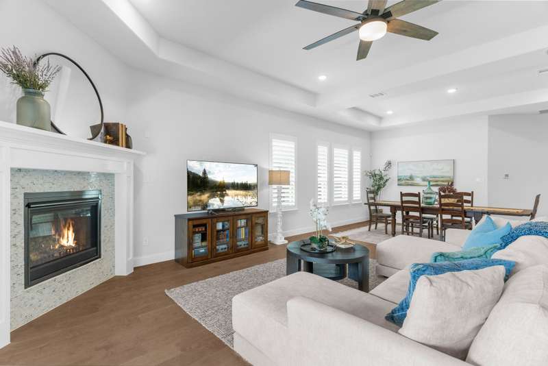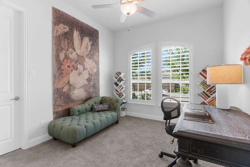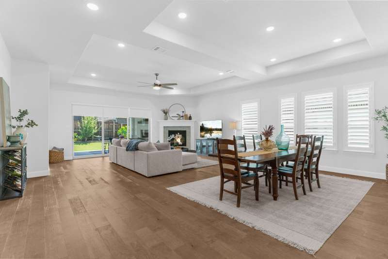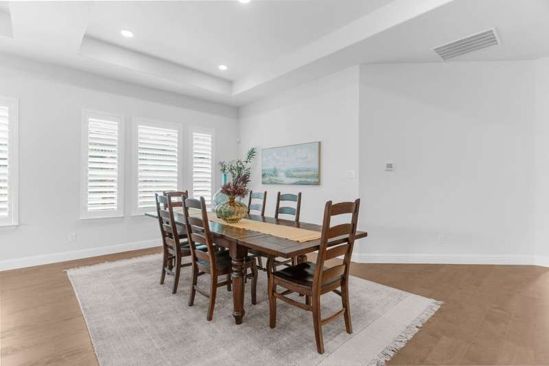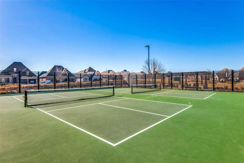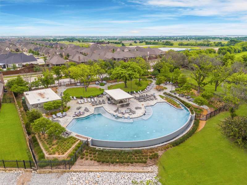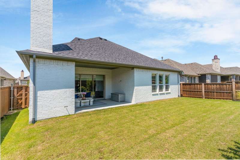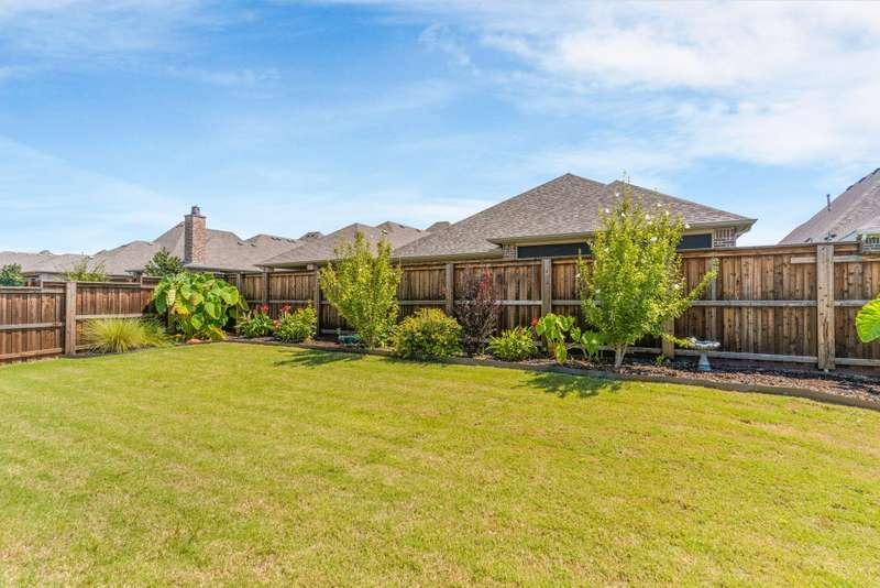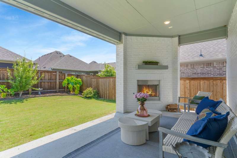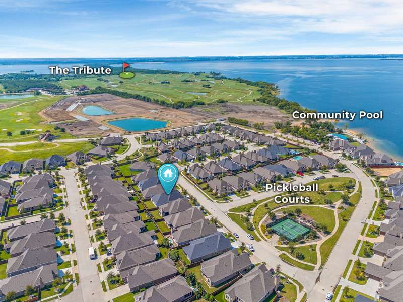 You'll want to live here! A fabulous 1-story Taylor-Morrrison floorplan showcasing many upgrades & lots of natural light. Located in the exclusive section of Waterford Point at The Tribute, you'll appreciate the vast amount of beautiful hardwood floors, the big island kitchen, extra-large living-dining rooms, high ceilings & the split 3-bedroom plan that boasts an impressively large primary bedroom-bath. Neutral tones throughout ~ ready for your personal accents! More desirable upgrades include: panoramic stackable sliding doors in the living room bringing outdoor beauty in as it faces the backyard; plantation shutters throughout; decorator lighting & ceiling fans; gas log corner fireplace; stainless appliances featuring a gas cooktop + includes the French-style refrigerator; a spacious covered back patio with an outdoor fireplace & hearty Texas landscaping in front & back. Pickleball lovers will appreciate the neighborhood courts just down the street + Waterford Point residents have a dedicated resort-style pool with panoramic Lake Lewisville views, a fitness center & clubhouse. Tribute amenities for all residents: another impressive swimming pool, splash park, hike & bike trails, dog park, kayac launch, two award-winnning golf courses + dining. Coming in 2026: The Tribute Park & Lakeside Marina. Zoned to Little Elm ISD, including nearby Prestwick Elementary, a NISE STEM Certified Campus. Your very own suburban sanctuary!