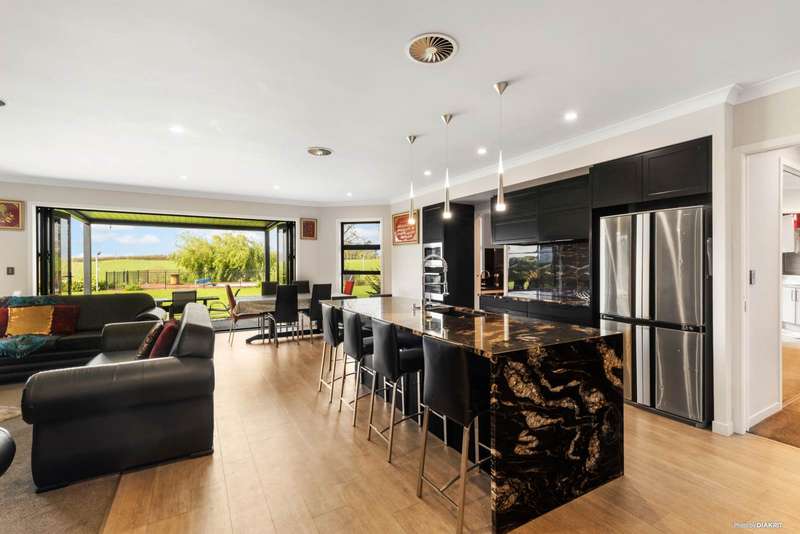 A true statement of elegance and scale, this magnificent 433m² estate delivers the ultimate in multigenerational luxury living. Privately positioned well off the road on a perfectly flat 2.11-hectare parcel, this exceptional offering balances refined sophistication with relaxed country tranquillity. Completed in 2017, the home showcases masterful design and premium craftsmanship throughout. Seven generous bedrooms, including three with walk-in wardrobes, are complemented by six beautifully appointed, fully tiled bathrooms finished to an impeccable standard. Multiple living zones — including two formal lounges and two family rooms — provide space and separation for all, while the seamless flow to the outdoors creates an entertainer’s paradise. A gas fireplace and full central heating system ensure comfort in every season, while expansive glazing captures light, warmth, and stunning rural vistas. Outside, manicured grounds lead to a sparkling heated swimming pool — the perfect backdrop for long summer days with family and friends. Beyond the residence, the estate offers impressive functionality with a four-bay shed, an additional two-bay shed, and a tool shed. Two well-fenced paddocks cater for animals, and a charming dolls’ house adds a touch of whimsical charm for the little ones. A mature shelter belt to the west provides privacy and protection, enhancing the property’s peaceful, secluded ambiance. This is more than a home — it’s a lifestyle masterpiece, offering space, sophistication, and serenity in equal measure. Key Features: • 433m² residence (built 2017) • 7 bedrooms, 6 luxury tiled bathrooms, 3 walk-in wardrobes • 2 formal lounges and 2 family rooms for flexible living • Central heating system and gas fireplace • Heated pool area with stunning rural outlook • 2.11ha of level, private land with 2 fenced paddocks • 4-bay shed, 2-bay shed, tool shed & elaborate dolls’ house • Sheltered, secluded position with excellent privacy • In zone for Glenbrook Primary School Year 1-8 • Approx. 45mins to Auckland CBD Experience the ultimate in space, sophistication, and family living — this is lifestyle excellence at its finest! Auction: 177 King Street, Pukekohe (Branch Office) on Thursday 20 November 2025 at 2:00PM (unless sold prior)