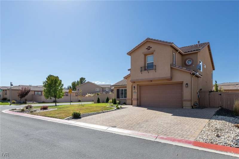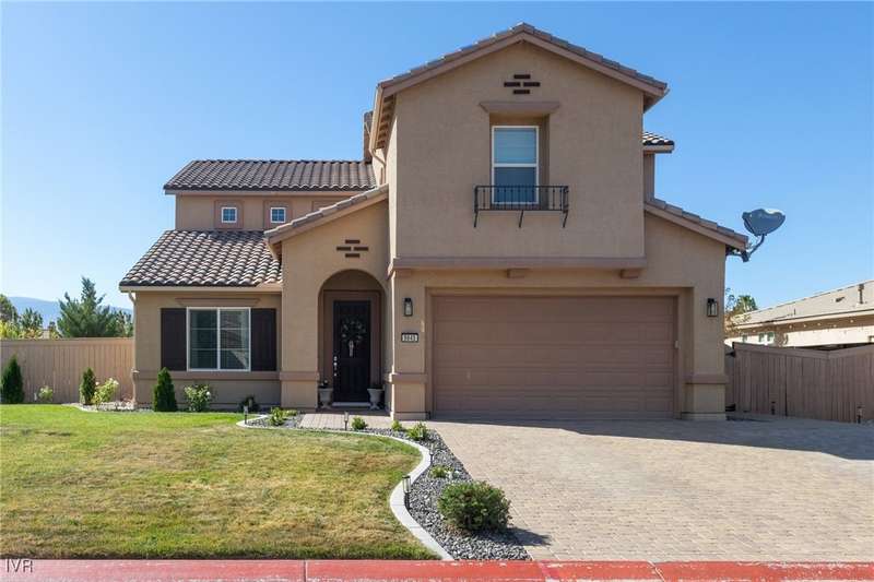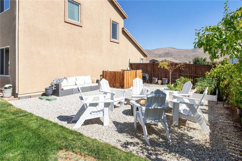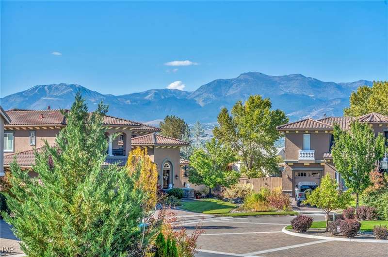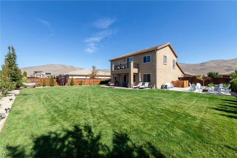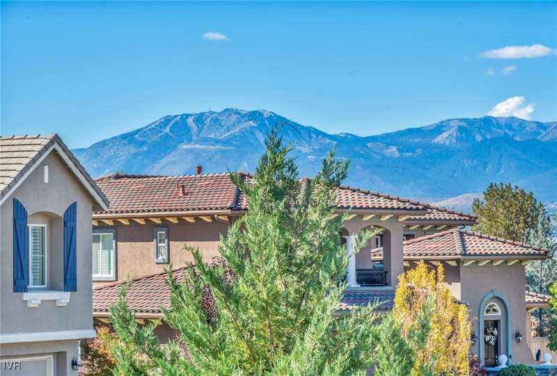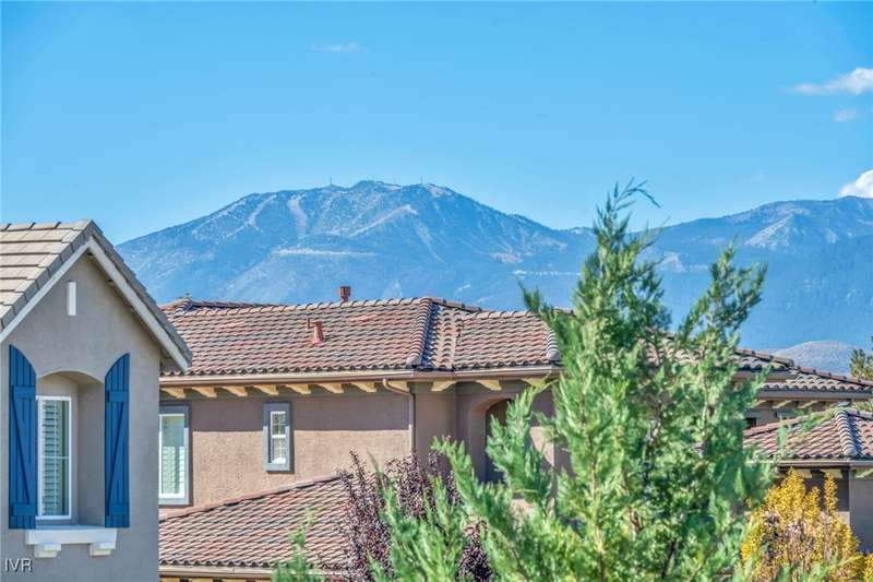 Introducing 9845 Copenhagen Way ~ this gorgeous three bedroom plus large loft area home showcases beautiful views of Mt. Rose, a very big plush landscaped back yard, raised vegetable planters and is also big enough to add a swimming pool. The many upgrades included are extra high ceilings, 8' doors, wood floors, 2" wood window blinds, ceiling fans in every room, upgraded kitchen appliances, quartz center island, upgraded back splash, granite counters in the master bath, upgraded tile in bathrooms, alarm system, big storage space under the stairway and storage racks in the garage. Situated on an oversized corner .276 acre lot and only one of four Hemmingway plans. The Saddle Ridge gated community offers residents private access to resort-style amenities including a clubhouse, tennis and pickle-ball courts, a beautiful in-ground pool, playgrounds, scenic walking trails, and a manned security gate. All within close proximity to world class skiing and the beautiful Lake Tahoe.