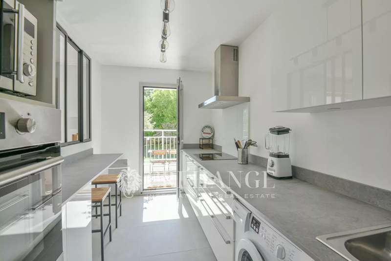 In a secure and well-maintained residence (recent façade renovation), close to the town center, schools, and shops, this 103 m² apartment is located on the first floor of a 1992 building. It features an entrance hall leading to a bright double living room with large bay windows opening onto a 17 m² south-facing terrace, also accessible from the fitted and equipped kitchen. The night area includes a master suite with bathroom and toilet, two additional bedrooms, a shower room, and a separate toilet. A large cellar and a parking space in the basement complete this property, with the possibility of acquiring a second parking space as an option.