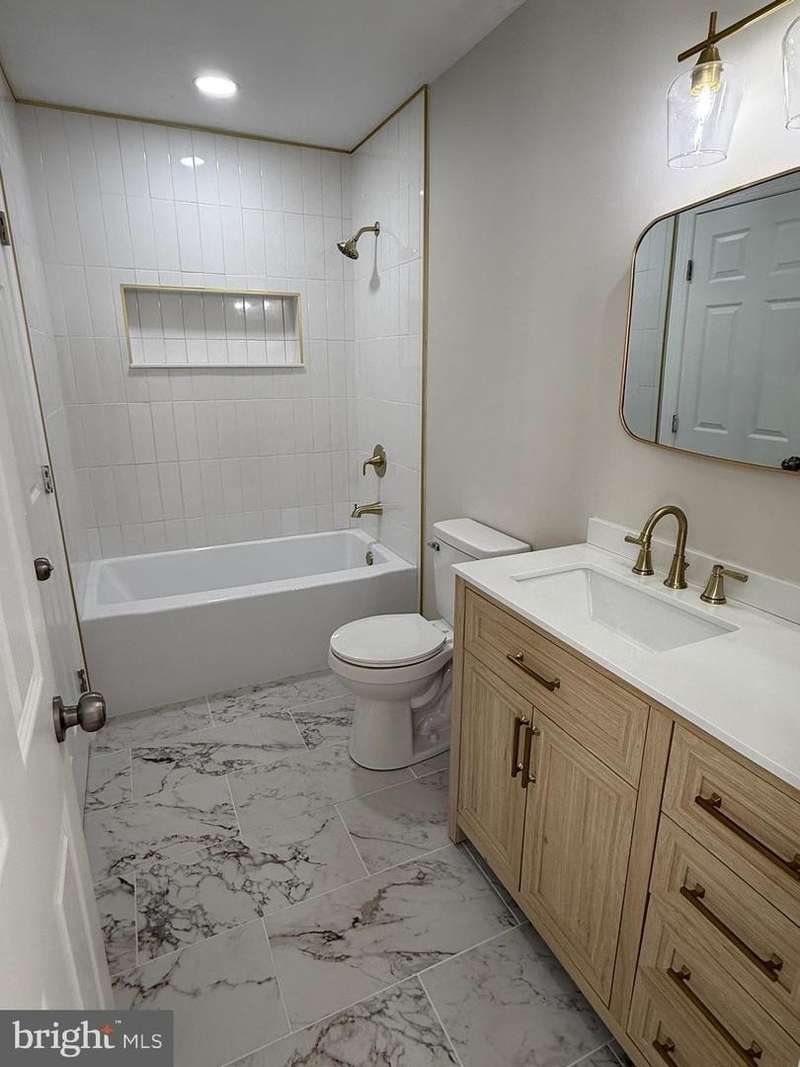 Renovation just completed on this stylish 2-bedroom, 1.5-bath end unit townhouse! Enjoy a spacious, light-filled living room with neutral Pergo flooring that complements any decor. Step into an inviting open-concept kitchen featuring soft-close white shaker cabinets, quartz countertops, stainless steel appliances, and recessed lighting-perfect for modern living. Upstairs, you'll find two generous bedrooms, including a primary suite with its own vanity area. The full bathroom showcases a custom-tiled shower, oversized niche, and elegant gold accents for a touch of luxury. The finished basement with wall-to-wall carpeting offers endless possibilities-create your ideal rec room, office, or guest space. Situated at the end of a peaceful cul-de-sac with a park just steps away, this home is the perfect blend of comfort, convenience, and modern style. Welcome home! The owner is a Realtor and a Certified Residential Real Estate Appraiser in Delaware.