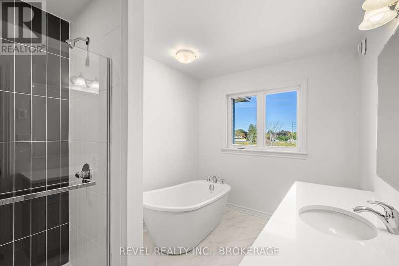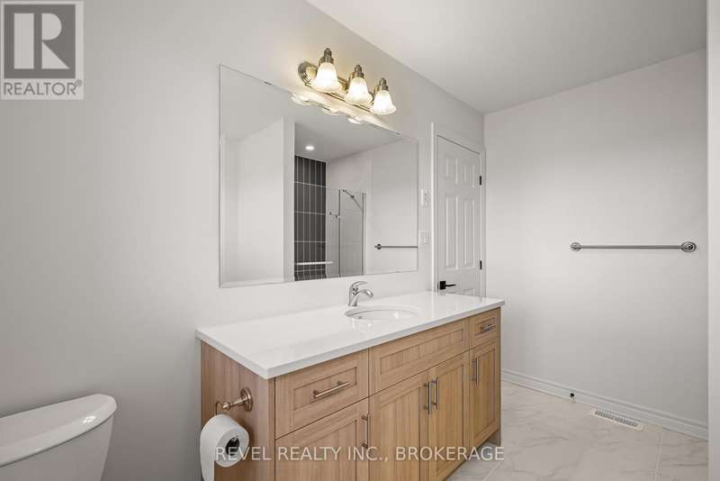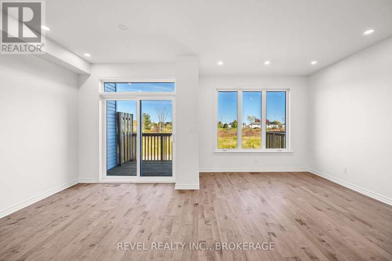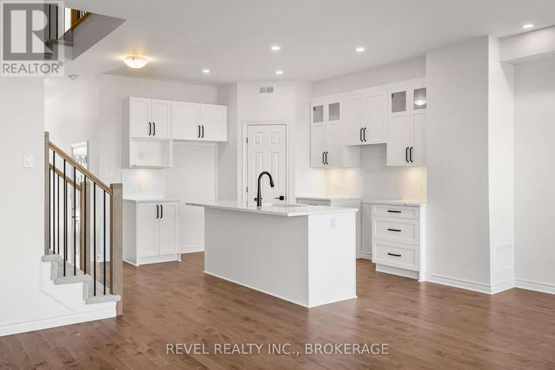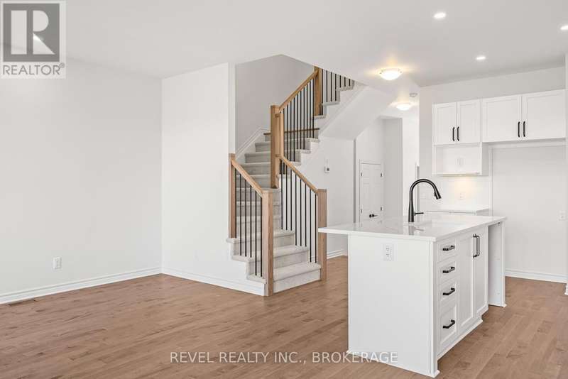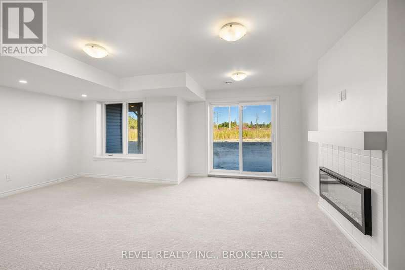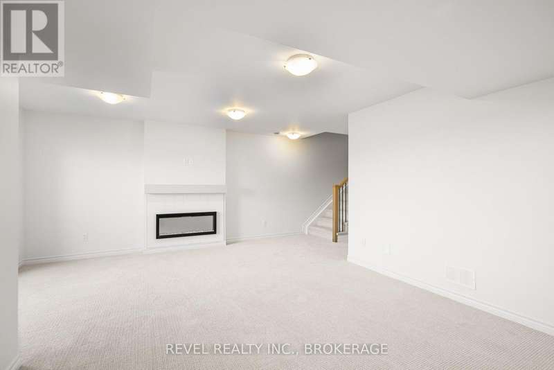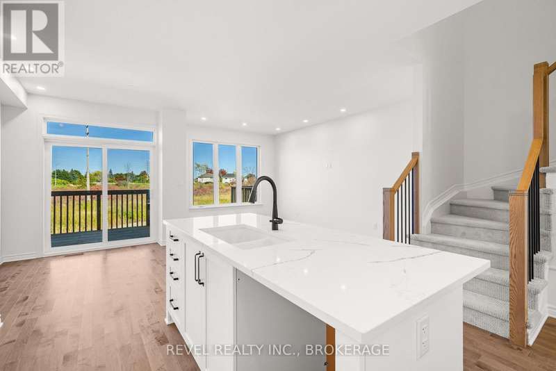 The Abbey model offers 1,855 square feet of finished stylish living in Kingstons West Village community. The main floor showcases maple hardwood, a modern kitchen with quartz counters, white shaker cabinetry, an upgraded sink, and a spacious walk-in pantry. A cozy gas fireplace anchors the living area. Upstairs, the primary suite includes a luxurious 4-piece ensuite with a freestanding tub and a walk-in tile-and-glass shower. The home also features a finished walkout basement with a rough-in for a future bathroom, giving you plenty of extra living space and flexibility. ENERGY STAR certified for efficiency, this home is close to the Rio Can, Cataraqui Centre, new schools, and parks. (id:7434)