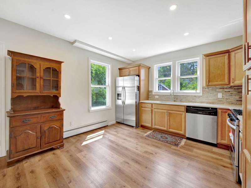 Welcome to this beautifully updated 3-bedroom home that blends modern upgrades with timeless character. Step inside to find tall ceilings, an abundance of natural light, and stunning refinished dark hardwood floors that flow throughout the main living areas. The brand-new kitchen is both stylish and functional, featuring sleek cabinetry, new stainless steel appliances, and ample space for cooking and entertaining. Outside, enjoy a large, flat backyard offering endless possibilities ideal for outdoor living, gardening, or even potential subdivision (subject to town approval). A spacious detached garage adds extra storage or workshop potential. This is a rare opportunity to own a move-in ready home with room to grow, both inside and out. Don t miss your chance to make this versatile and inviting property yours!