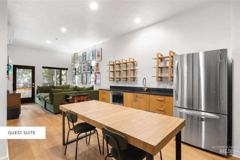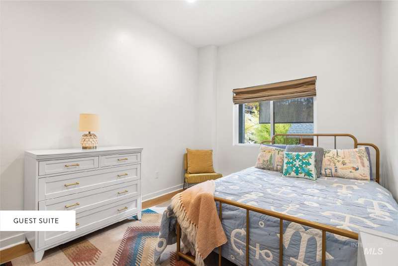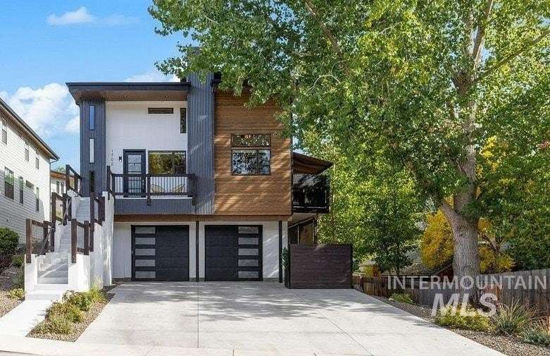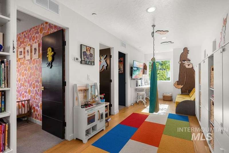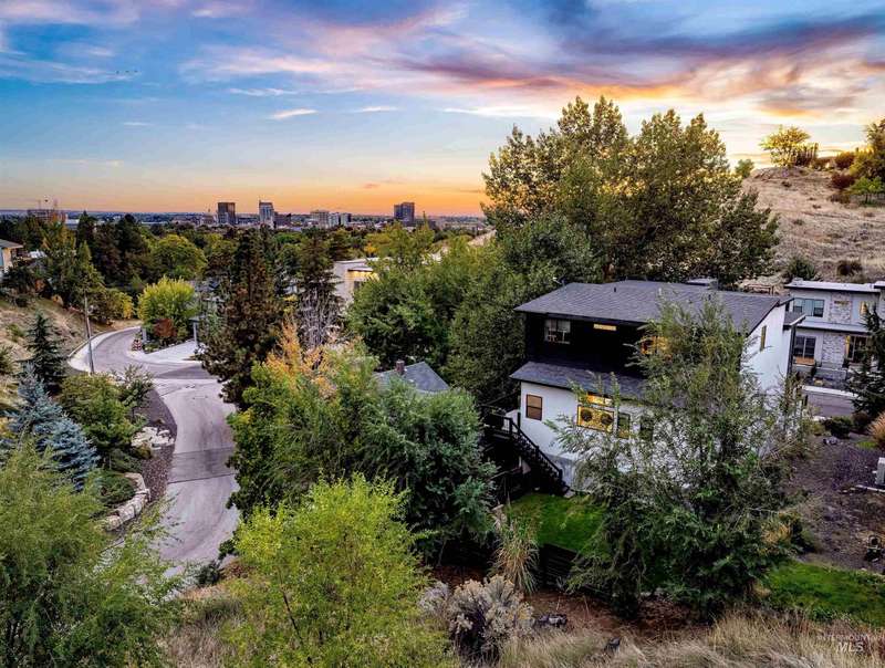 Gorgeous contemporary home nestled in Boise’s coveted North End Foothills! Prime location near Hyde Park’s charming shops and restaurants, downtown, parks and endless trails. Step inside to soaring 20-ft beamed ceilings, wide-plank white oak floors, curated lighting fixtures and abundant natural light throughout. The open layout features a sleek chef’s kitchen with quartz waterfall island and new gas range. The great room’s roll-up garage door and double-sided fireplace open to a private deck for seamless indoor-outdoor living and entertaining. Main-level primary is a true retreat with a sitting/reading nook, direct deck access, luxurious spa bath with heated tile floors and glass-enclosed shower/soaking tub, and a custom California Closet system with laundry hookups. Upstairs offers a bonus/loft area, 2 bedrooms with custom closets, a full bath and laundry. The versatile lower-level, with 9-ft ceilings and separate entry, functions as a guest suite, in-law apt., or family/media room with kitchenette, dining space, bedroom, bath, closets, laundry and deck. Neighborhood hilltop trail across the street for spectacular sunset and downtown skyline views! Main-level office, fenced backyard, insulated garage. Zoned for great schools!