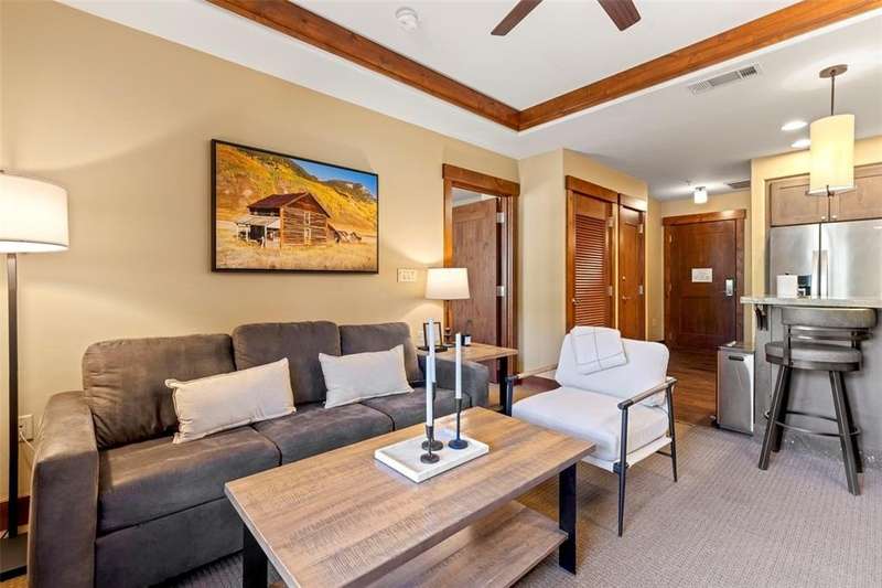 The ONLY 1-bedroom, 2-bathroom unit on the ski slope side in all of One Ski Hill Place! Enjoy stunning views of the entire base of Peak 8 and the best ski-in ski-out access in all of Breckenridge. In the summertime, take advantage of the Breckenridge Fun Park with countless outdoor activities for all to enjoy. One Ski Hill Place also features some of the best amenities including a bowling alley, theater room, pool, hot tubs, sauna, steam room, restaurant, 24/7 front desk, underground parking, and much more. Steps from the gondola and bus for downtown access. Strong rental income if desired. $107,000 gross in 2022. Don't miss this opportunity to own a real gem in history Breckenridge.