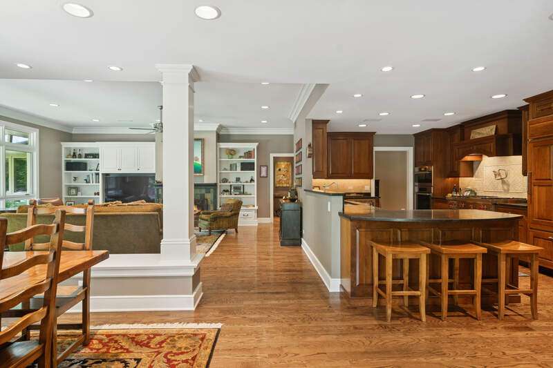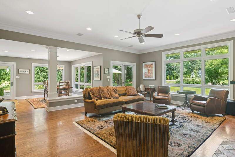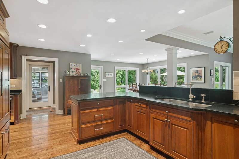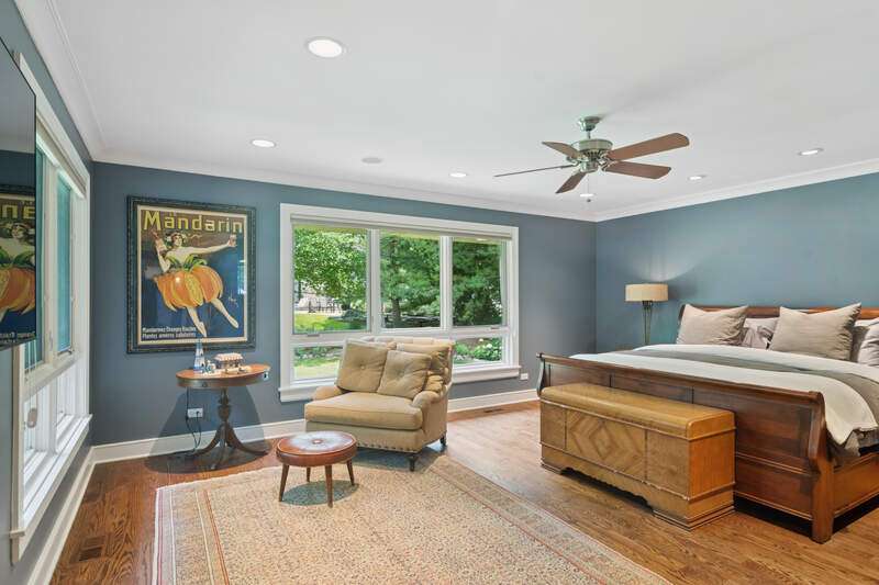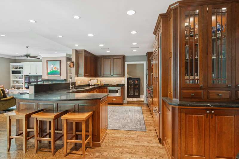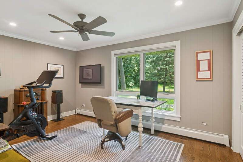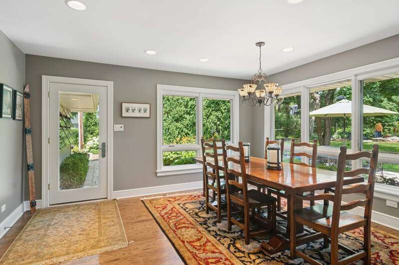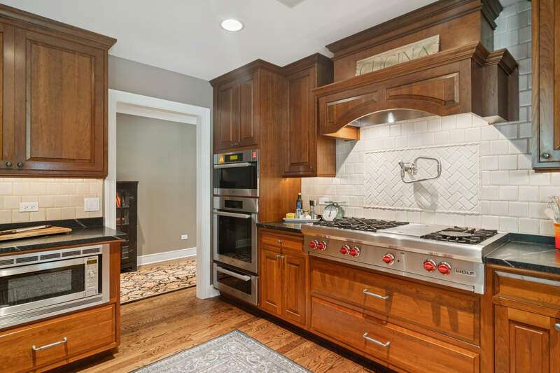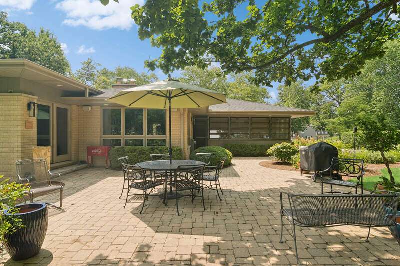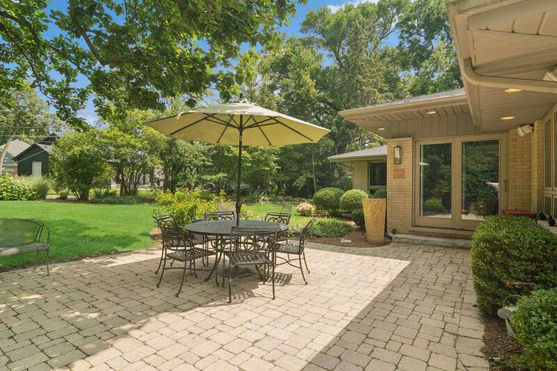Remarkable Statement Ranch with Mid-Century Modern Flair and Today's Top Amenities Welcome to this truly stunning ranch home in the prestigious Plum Grove Estates community, seamlessly blending timeless Mid-Century Modern design with luxurious upgrades throughout. Thoughtfully expanded and masterfully remodeled, this home exudes style, warmth, and function for modern living. Step inside through the gracious foyer that warmly greets your guests. Rich hardwood floors flow effortlessly throughout the home, complemented by premium trim and millwork that elevate each space. The formal dining room, anchored by a handsome fireplace, is designed to host your largest celebrations and intimate dinner parties alike. Prepare to be amazed by the chef's dream kitchen. Beautiful custom cabinetry is paired with elegant granite countertops, offering abundant prep space. Featuring top-of-the-line appliances including a Sub-Zero refrigerator, Wolf 6-burner gas cooktop, Miele double built-in ovens with steam functionality, and warming drawers, this kitchen is ready for grand entertaining. The dedicated bar and prep area with a beverage fridge ensures effortless hosting for every occasion. The addition includes a sunlit breakfast area that opens to the backyard and an expansive family room showcasing vaulted ceilings, expertly crafted built-in cabinetry and shelving, and a beautiful fireplace as its focal point. Oversized windows flood this space with natural light while framing gorgeous views of your professionally landscaped yard. Retreat to the impressive primary suite featuring a luxurious spa-inspired bath with dual sinks, a glass-enclosed shower, a private water closet, and an extraordinary walk-in closet outfitted with custom organizers. Bedrooms two and three each offer double closets with built-in organizers and share a fully remodeled hall bathroom. Enjoy your enclosed 3-season porch allowing year-round comfort. The finished basement expands your living space with a recreation room featuring a third fireplace, a full bathroom, and a private den that easily serves as an additional sleeping area. The utility room offers epoxy floors, a washer and dryer (new in 2022), sump pump with "Trusty Warns" backup system for your peace of mind. A massive cement crawl space provides abundant storage for all your extras. Step outside to your simply stunning lot, filled with mature landscape providing year-round color and interest. Entertain on your expansive brick paver patio, gather around the built-in firepit for cozy evenings under the stars, and embrace the outdoor beauty this property offers. The addition and remodel of this extraordinary home create an environment equally suited for grand entertaining and quiet moments of conversation. A true masterpiece with Mid-Century Modern flair and today's best amenities, ready to welcome you home. IMPRESSIVE LIST OF RECENT UPDATES: Full Tear Off Roof with 25 year Dimensional Shingles in 2023, Miele Dishwasher NEW in 2025, Washer & Dryer NEW in 2022, Wolf Gas Cooktop NEW in 2025, Beverage Fridge NEW 2020.