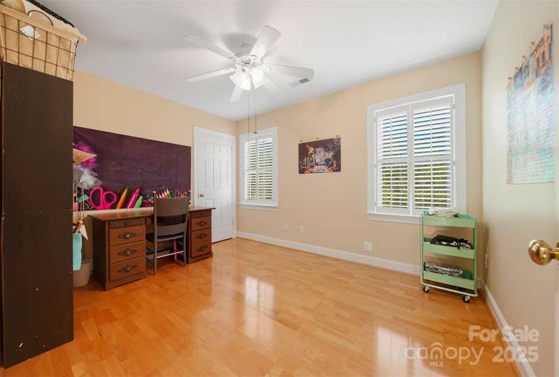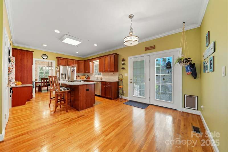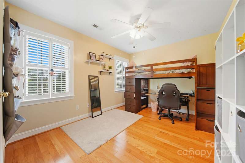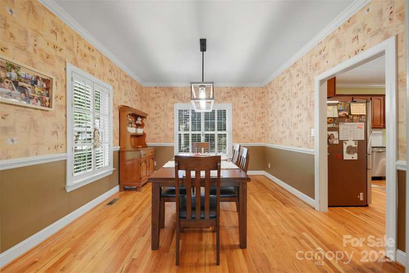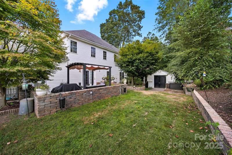 Welcome to this inviting two-story home in the established Woodwinds neighborhood, set on a rare double lot totaling .81 acres with a wooded second lot, where space, comfort, and charm come together. Built in 2002, it features 4 bedrooms plus a versatile bonus room and timeless hardwood floors throughout. The great room is the heart of the home with a gas log fireplace and built-ins, opening seamlessly to the kitchen and dining area perfect for family meals or hosting friends. The kitchen includes granite countertops, an eat-at island, and a walk-in pantry, while the main level also offers a formal dining room for special gatherings, a family room for casual nights in, and an office for work or study. Step outside and enjoy a backyard designed for connection and relaxation. Gather under the pergola for evening dinners, roast marshmallows by the firepit, or tend to the blueberry and blackberry bushes, producing fig tree, and rose gardens. With multiple outdoor entertaining spaces, you ll have room to celebrate every season. Nestled in the friendly Woodwinds community, this home offers the ideal setting to create lasting memories and embrace a lifestyle filled with warmth and possibility.