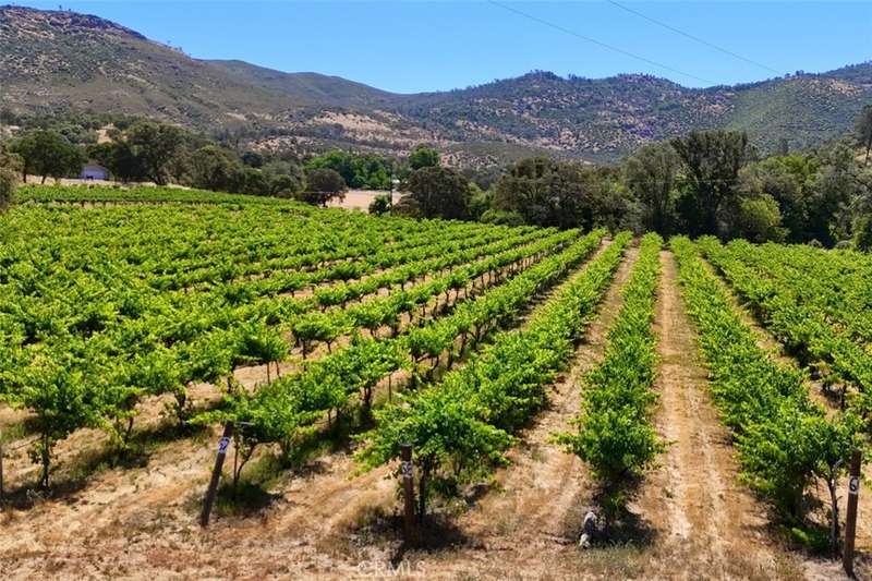 Experience the essence of refined Sierra Foothill living at the Lyons Vineyard Estate, a remarkable 28+ acre TWO HOME compound just 15 minutes from historic downtown Mariposa and less than an hour from the western entrance to Yosemite National Park. This rare property combines natural beauty, curated architecture, and established agricultural use which makes it perfectly appointed for a private retreat, boutique wine operation, or next-generation agri-luxury investment. At the heart of the property sits an elegant 5,188sf MAIN RESIDENCE, extensively remodeled in 2008 with travertine and hardwood flooring, granite countertops, and artisan finishes throughout. Negotiable in the sale are curated contents of exceptional taste, including Waterford chandeliers, fine artwork and classy furnishings, making this an unparalleled turn-key offering. A charming COTTAGE of 960sf consists of 2 bedrooms and 1 bath with a 600sf detached garage. A 704sf STUDIO-STYLE SPACE with bathroom is attached to a 4-car carport and would be ideal for conversion to a wine-country bunkhouse or Vintner's Unit. Eight acres of mature VINEYARD, four acres of Syrah and four acres of Cabernet Sauvignon, are professionally maintained and drip-irrigated via well-fed POND. Vineyard averages 2 tons per acre season to season and the harvest from this vineyard went into making the award-winning 2015 Syrah (Best of Class, SF Chronicle Wine Competition). The cellar is located in the main residence at basement level and includes storage for 1,820 bottles, wine stock also negotiable in the sale. For your outdoor enjoyment, not only is there the year round pond but also two seasonal creeks with Cotton Creek offering cascading water falls and a series of stacked pools. Enjoy a glass of fine red wine on one of the balconies while stargazing and listening to the symphony of frog song at this majestic?????????????? estate.