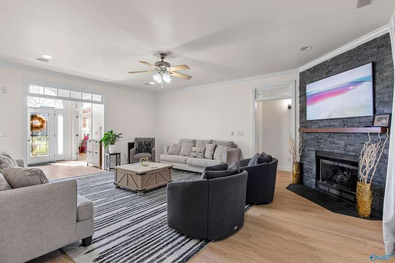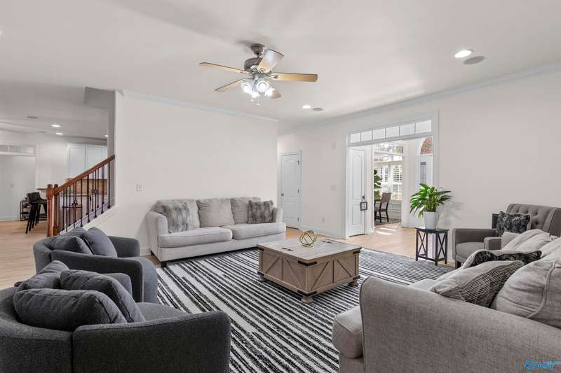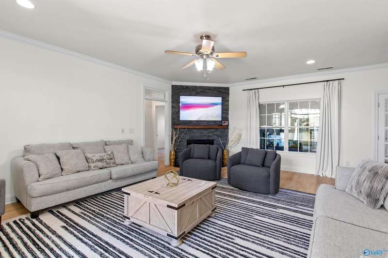 Beautifully updated 4-bedroom, 4-bath home offering over 3,700 sq ft of thoughtfully designed living space. Featuring fresh updates throughout including new flooring, modern lighting, and stylish paint colors that create a warm, inviting atmosphere. The open-concept layout features a spacious living area with a stacked-stone fireplace, a bright dining room with plantation shutters, and a chef’s kitchen complete with granite countertops, stainless appliances, and crisp white cabinetry. The oversized sunroom provides the perfect year-round space for relaxing or entertaining with views of the backyard. Upstairs, two generous bonus rooms offer endless versatility for a playroom, gym or office.