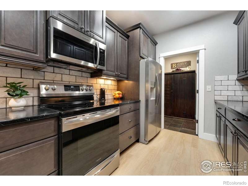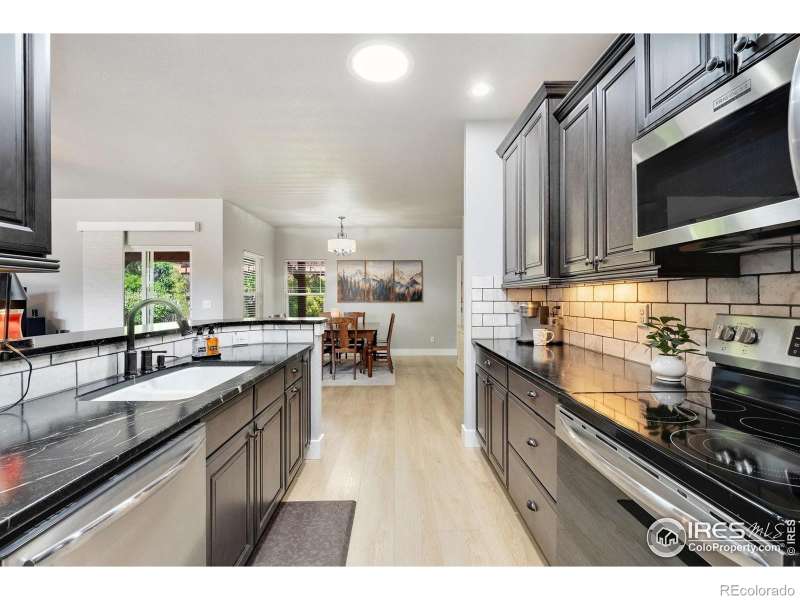 Welcome to this deceptively spacious ranch-style home, centrally located in the heart of Fort Collins. Step inside to discover a beautifully updated main floor featuring luxury vinyl plank flooring, elegant soapstone countertops, high ceilings and an open-concept layout that's perfect for both relaxing and entertaining. The primary suite offers a walk-in closet and a stunning bathroom with custom tilework. Two additional bedrooms, another full bath and a convenient main-level laundry room complete the first floor. Just off the living room, escape to your private backyard oasis with mature landscaping and a charming pergola-ideal for outdoor gatherings or quiet mornings. The finished basement expands your living space with a large family room, a versatile fourth bedroom or office, a stylish wet bar, and a cozy theatre area. This home offers abundant storage with a spacious basement area and a convenient outdoor shed. Enjoy easy access to local favorites like Jessup Farm, King Soopers, scenic nature trails, and the neighborhood pool-all just minutes away. Pre-Inspected!