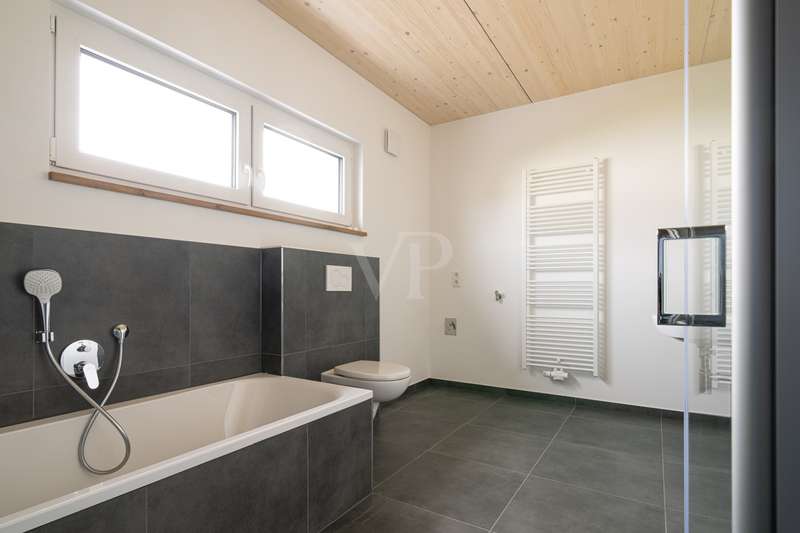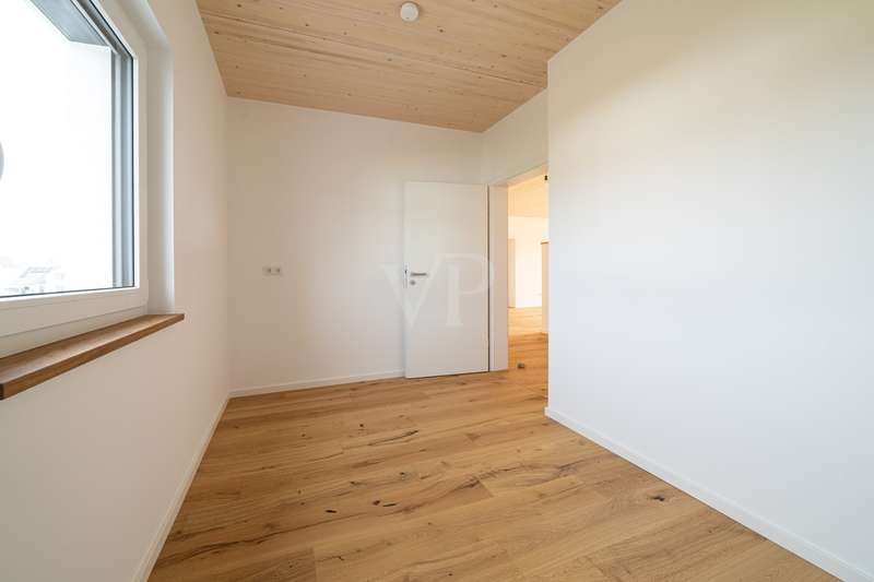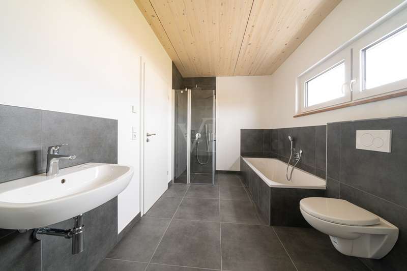 This modern new-build project is situated in a quiet and natural location in Flachslanden and impresses with its efficient KfW 40 standard and high-quality overall fittings. The complex comprises a total of just nine apartments, which are characterized by well thought-out architecture and first-class construction quality. The units offer an attractive selection of floor plans: 2-room, 3-room and spacious 4.5-room apartments that provide an ideal home for singles, couples and families alike. The project has already been completed, so nothing stands in the way of moving in! Both young and old will find a new home here. The entire complex and the apartments have been designed to be barrier-free. All floors are accessible via the central elevator. In addition, all bathrooms feature a level-access shower. The external bicycle boxes are also accessible at ground level and offer additional storage space. The timber construction gives the building a natural, warm appearance and also ensures a high level of energy efficiency. In order to guarantee standard living in the future, the new nine apartments were built using sustainable construction methods. Thanks to regenerative energy sources such as a photovoltaic system with storage, the local heating supply and the ventilation system with heat recovery, the apartments can definitely be described as future-proof and independent. The newly created floor plans impress with their clear room layout. In addition, the generous amount of light creates an atmosphere of harmony and elegance. The floor-to-ceiling south-facing windows provide a view of the greenery and convey a boundless feeling of living. Your own four walls offer a large, open area for living, dining and cooking. Attached to this are the respective retreat areas with plenty of space for work, guests and sleeping. Almost all bathrooms also have natural light. A floor-level shower with glass shower partition is naturally provided in all bathrooms. The 4.5-room apartments also have a bathtub. Lingering on the garden terraces and the well-proportioned south-facing balconies is particularly enjoyable. As soon as you enter your new apartment, you should feel the security and warmth that make a home. Particular attention was paid to the quality of the furnishings. High-quality real wood parquet has been laid in the living and sleeping areas and the bathrooms are tiled in modern anthracite. All residential units have additional storage space in the bicycle boxes and two free parking spaces. This new-build project in Flachslanden is ideal for anyone who wants to combine modern living with sustainability and a high level of comfort. A perfect home for people who value quality, energy efficiency and a residential location close to nature. See this pioneering project for yourself at a personal viewing appointment on site. We look forward to seeing you!