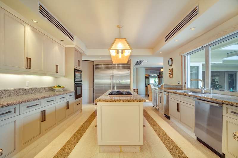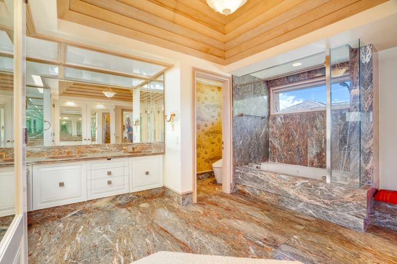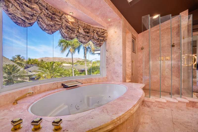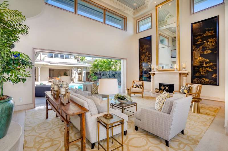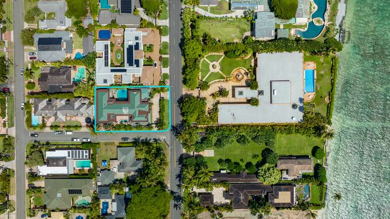 This home is an exceptional buy for the Kahala market. Priced below replacement cost for this INCREDIBLE & RARE to see craftsmanship! Completed in 1993 & built from quality materials & impeccably detailed carpentry. The original décor & finishes of each room was created as a series of elaborate fantasies from Shakespeare to the travels of Napoleon. A dramatic entry boasts soaring ceilings impeccably detailed; a sweeping staircase highlighted by walls of glass; & an extensive use of fine marble & granite throughout. Wide pocketing glass doors joins the interior to the outdoor spaces & pool for relaxing in this splendid residence. The first level includes a grand dining area with a reflective mirrored ceiling, a service bar with a spacious lounge for social gatherings, a library/media room & two bedroom ensuites. On the second level is a billiard area with a step down cozy seating area for spectators to relax. To the right & left of the billiard room are two additional bedroom ensuites. The home includes a 3-car garage & lots of storage areas. Located across the street from the former Weinberg Estate & a direct access to sandy beach for a stroll along the ocean.