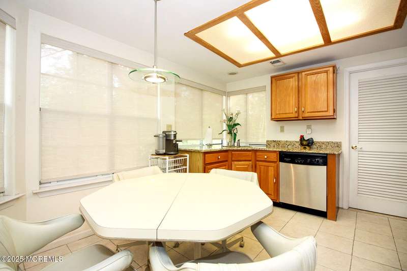 Welcome to this lovely, well-maintained end-unit Roxy model home, located in the desirable 55+ community of Leisure Village West. This delightful 2-bedroom, 2-bathroom home features a spacious and inviting floor plan designed for comfort and relaxation. Enjoy an open-concept living and dining area that offers plenty of space for entertaining guests or enjoying a quiet evening at home. The primary bedroom boasts cathedral ceilings, a generous double closet, and a private en-suite bath for your convenience. Additional highlights include an attached garage providing ample parking and storage, and a charming enclosed porch perfect for morning coffee or reading in the afternoon sun. Don't miss the opportunity to make this beautiful home yours. Schedule a private tour today!