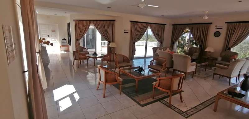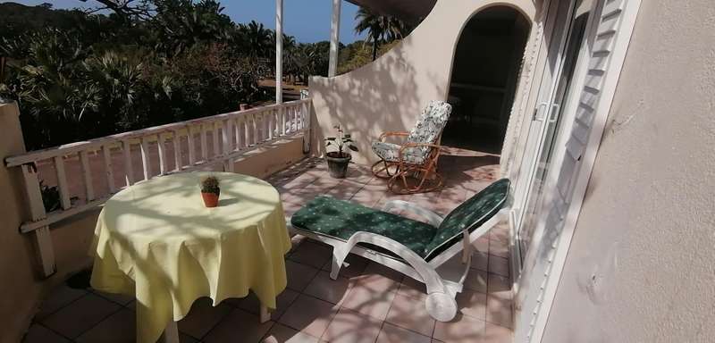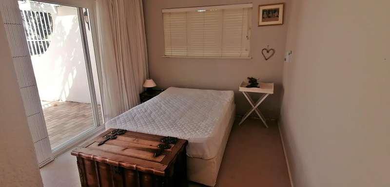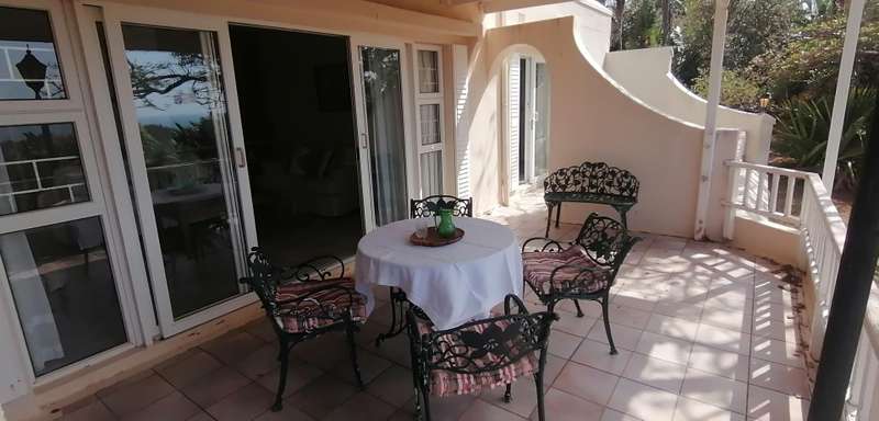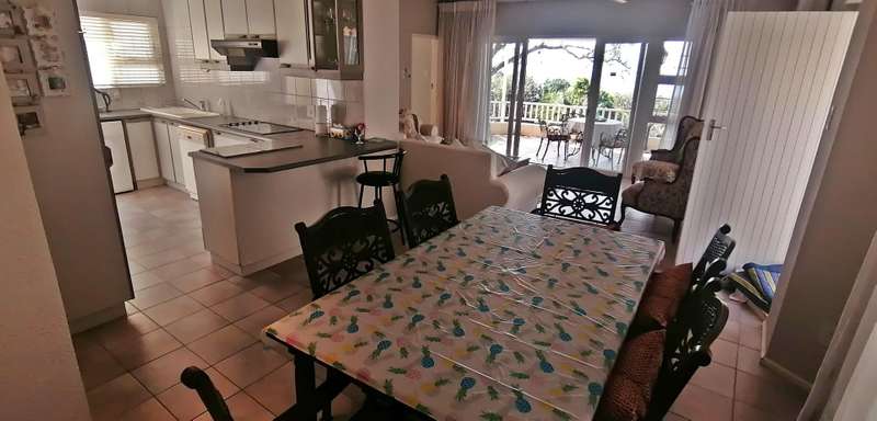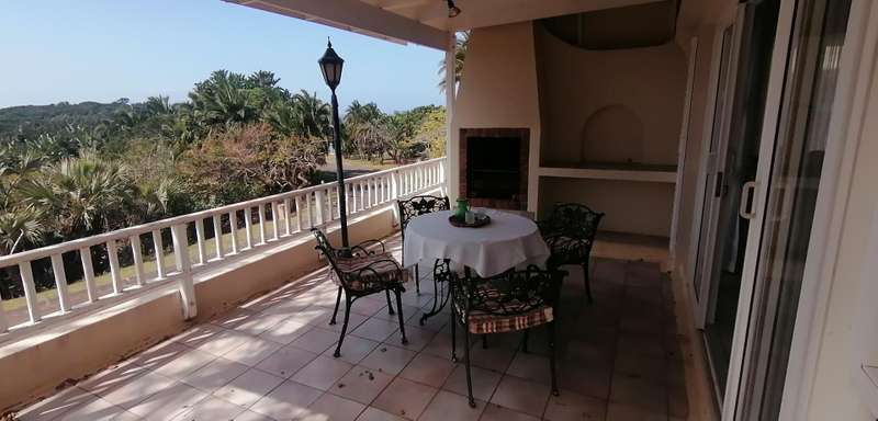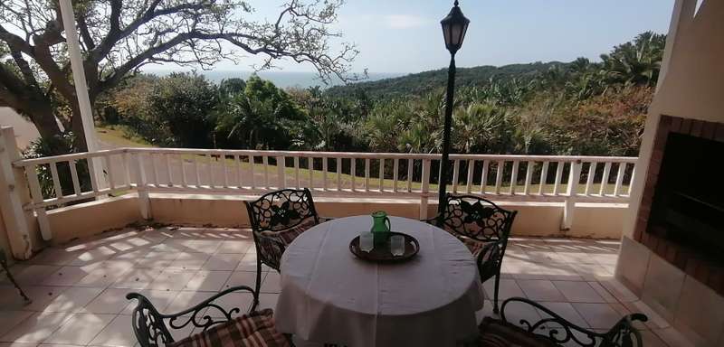 This cozy home is situated in the tranquil village of Palm Beach on the South Coast of KwaZulu Natal. The property is within walking distance to the main beach. The dwelling consists of three bedrooms, two bathrooms, main en-suite. The open plan living, dining and spacious kitchen walks out onto an undercover patio and entertainment area overlooking the large subtropical garden and ocean views. All the bedrooms have their own private individual patio. Single garage and separate sleeping accommodation for guests. Look out vantage point from the roof. Clubhouse where functions can be hosted, fully equipped gym, swimming pools and tennis court in the estate. A peaceful location within the treed garden offers a private breakaway spot. This coastal village has hiking and bike trails, water sports, boating, fishing, zip lining, numerous golf courses and so much more. Bird life, small duikers, bush buck and other wildlife can be viewed regularly.