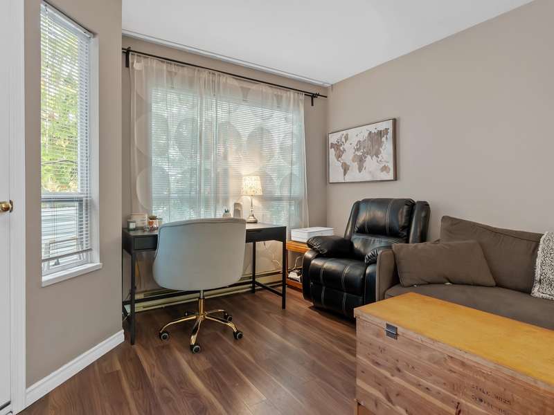 Top floor home on the quiet side of the building in Melrose. This bright, well-kept unit features laminate flooring, an updated bathroom, and a spacious kitchen with plenty of storage. The functional layout includes an open living and dining area that leads to an east-facing balcony, perfect for morning sun. The primary bedroom offers a walk through his and hers closet with a California Closet system. In suite laundry, storage locker and one parking stall included. All within walking distance to Richmond Centre, Brighouse SkyTrain, KPU, TWU, the Richmond Oval, Minoru Aquatic Centre and the Minoru Centre for Active Living. Quick completion possible.