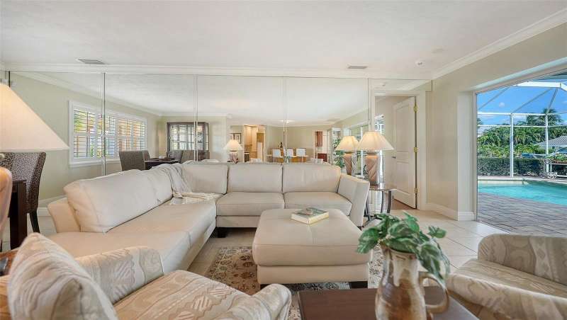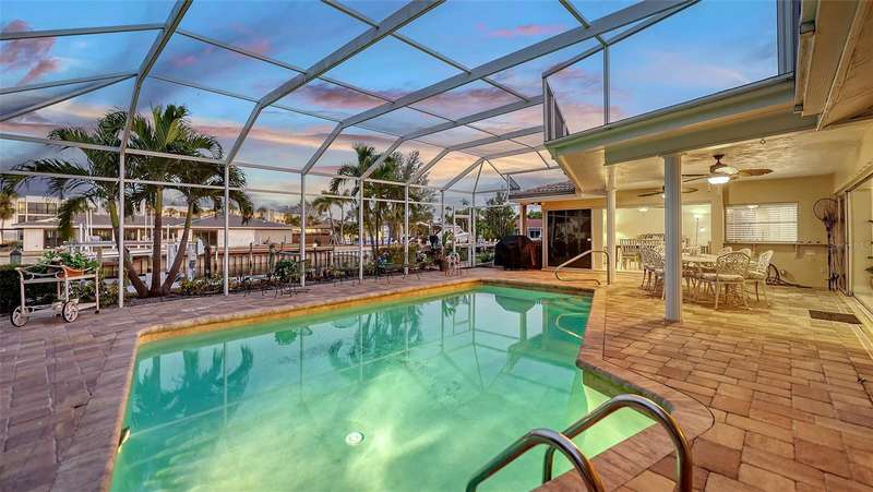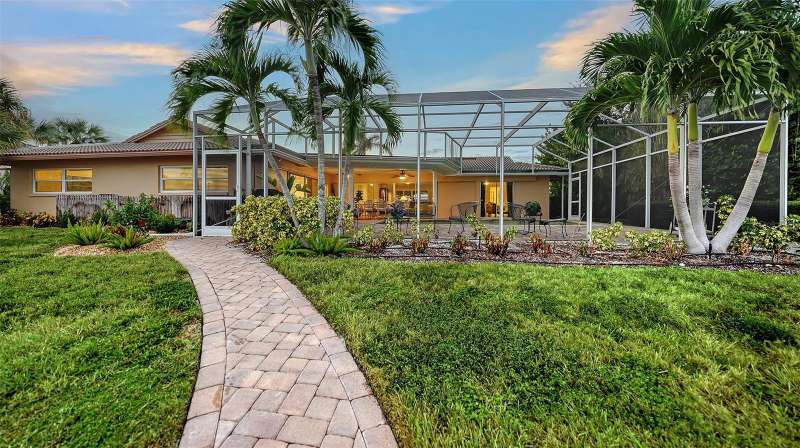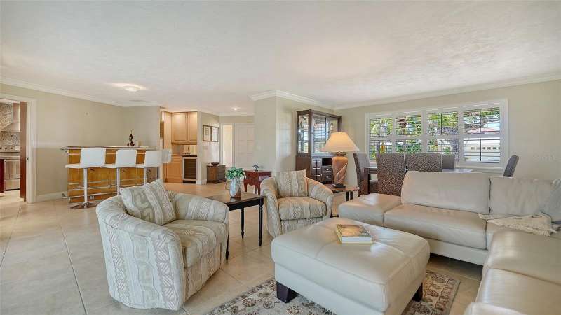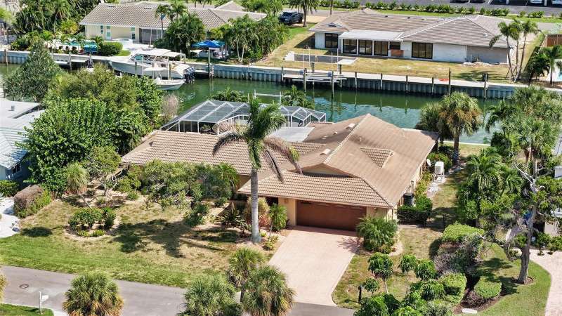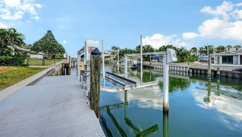 Discover the quintessential Longboat Key lifestyle in this classic masonry beach home located just “3” properties in from Sarasota Bay. Boasting 110 feet of canal frontage, your own private dock, a 7,500 lb. boatlift to complement this classic waterfront treasure it offers direct access for boating, fishing, and kayaking, with frequent visits from playful manatees and dolphins right in your backyard canal. The thoughtfully designed 2,000+ square foot split floor plan provides exceptional privacy with 3 bedrooms and 2 baths, ensuring guest suites are comfortably separated from the primary living spaces. The “secret” closet delivers a private office space for when you need to work or plan your next boat trip down the ICW. At the heart of the home, an expansive great room and dining area showcases a vintage "Casablanca" bar with seating for four, complete with wine captain, wet bar, and large refreshment cooler—perfect for hosting unforgettable gatherings while enjoying views of the shimmering enclosed pool and water views of your canal beyond. The chef's kitchen is a culinary masterpiece featuring high-end stainless-steel appliances, built-in ovens, microwave, trash compactor, custom cherrywood cabinetry, separate pantry, and elegant stone countertops with a "chef's prep" island. The layout seamlessly flows into the family room, where glass sliders invite refreshing bay breezes and open to an entertainer's dream: an enclosed lanai, expansive paver patio, and sparkling pool surrounded by multiple seating areas and serene tropical vegetation. Move-in ready with a new HVAC system and generator, this home has been meticulously maintained with numerous upgrades. Please see the attached “Sellers’ Improvement” feature sheet too many to mention…Offered turnkey furnished, it's perfect as either a primary residence or investment property with substantial seasonal rental income potential. The versatile, expansive lot provides endless possibilities to create your ideal waterfront retreat. Situated in the exclusive & sought after neighborhood of Country Club Shores, this property offers an enviable lifestyle just steps from world-class amenities. Directly across the street, you'll find championship golf and tennis at the prestigious Resort at Longboat Key Club, along with sugar-sand beaches and fine dining venues that define the resort experience. The location provides the perfect balance of tranquility and convenience—just minutes to St. Armands Circle, where upscale shopping, eclectic art galleries, and acclaimed restaurants await. Beyond these attractions, Longboat Key offers an array of recreational and cultural experiences, all easily accessible from your doorstep. As a Country Club Shores resident, you'll enjoy exclusive private beach access for only $100 in annual HOA dues—an exceptional value that enhances the already remarkable lifestyle this address provides. Whether you're seeking a year-round sanctuary or a seasonal escape with strong investment potential, this is a rare opportunity to embrace the coveted Longboat Key lifestyle. Schedule your private showing today and discover why this barrier island paradise is one of Florida's most treasured destinations. Come live the dream today & just move right in, it’s all here waiting for you !