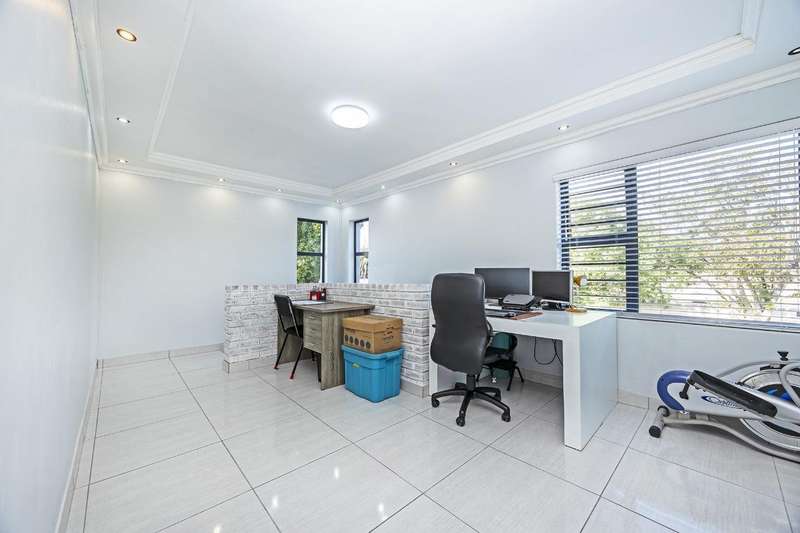 Immaculate 5 Bedroom Family Home! Positioned on a 918sqm plot in a well-established suburb - close to good schools, Langverwacht Plein shopping centre, Zevenwacht running/biking trails and more. Features: * The home fully enclosed * Large open-plan living areas * Five sizeable bedrooms with built-in cupboards (two bedrooms have an en-suite) * Two lounges * Dining room with built-in braai * Large family room * Modern open-plan kitchen with gas stove, breakfast nook, ample cupboard space and scullery * Full family bathroom * Study nook * Solar heated swimming pool * Double automated garage * Secure parking * Solar geyser, borehole * Property is fully secured with security features * Spacious backyard