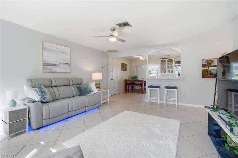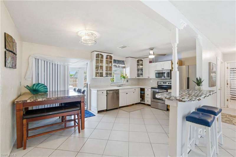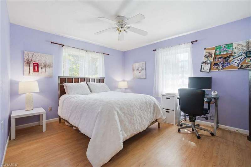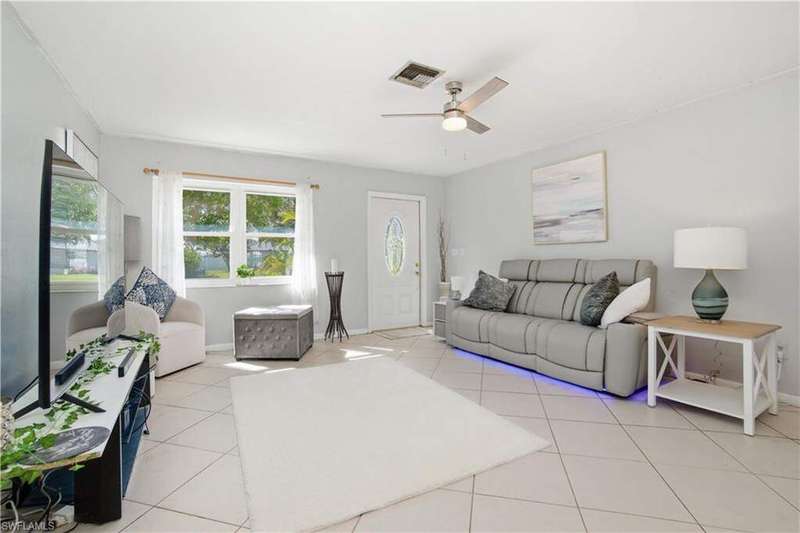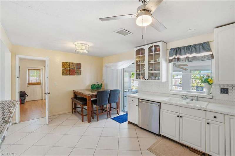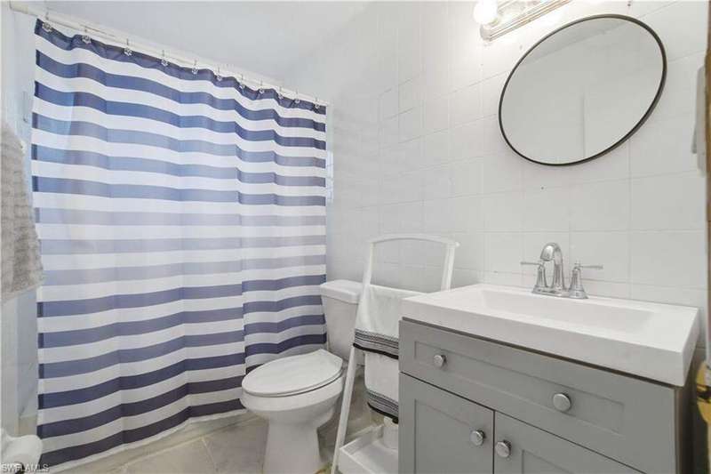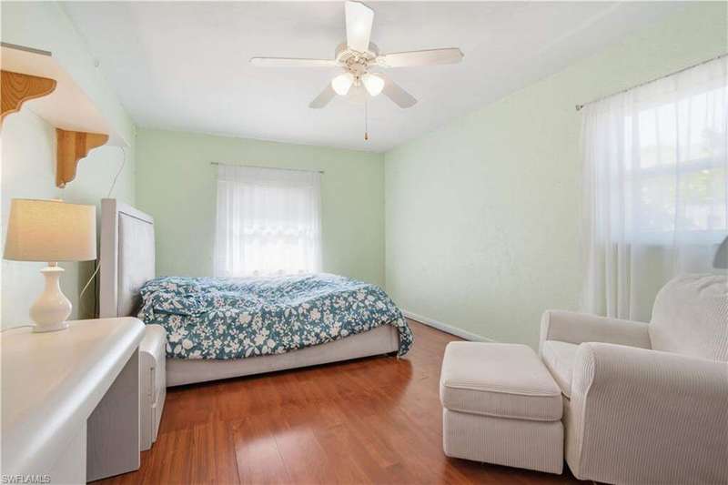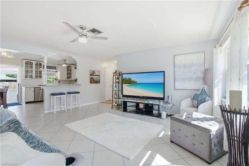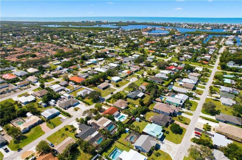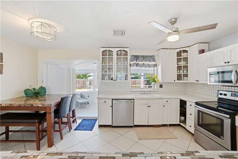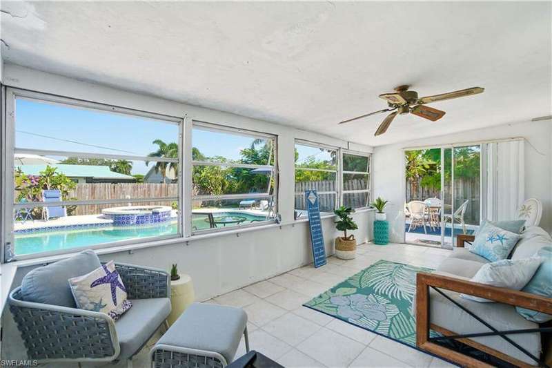 Charming coastal cottage with a POOL & SPA in the peaceful Bonita Shores neighborhood, only a 5-minute bike ride to the pristine sands on Bonita and Barefoot Beach. Perfectly situated in a high and dry flood zone (FLOOD ZONE X500)! This property offers incredible potential and is the perfect palette to update and customize to your own taste or transform into a lucrative investment property. This light & bright home features 2 bedrooms, 2 bathrooms, new HVAC (2023), tile flooring, hurricane impact windows, and hurricane shutters. Step outside to enjoy the spacious sunroom, perfect for shaded relaxation, or unwind by the large pool and spa featuring a new pool pump, motor, and LED spa light. The expansive fenced-in backyard provides plenty of room for pets and outdoor entertaining. The kitchen boasts white and glass-front cabinetry and a new stainless-steel dishwasher. With no rental restrictions, this coastal gem offers excellent potential rental income! Perfectly located in Collier County, in a peaceful neighborhood with a rare private community boat ramp (limited to only a small number of residents), no HOA fees & a short walk to over a dozen local restaurants! Prime location West of US-41, close to casual & fine dining & easy access to RSW Airport, the Promenade, Mercato & Waterside Shops.