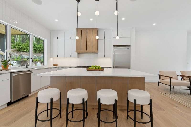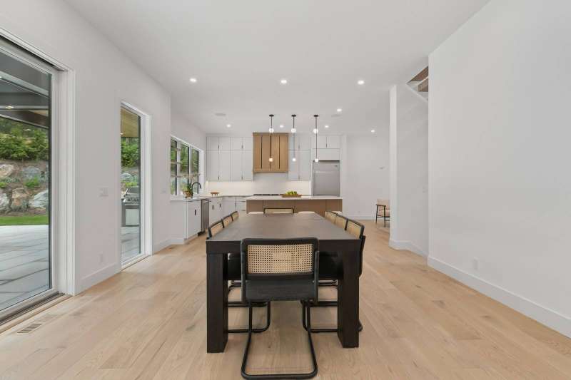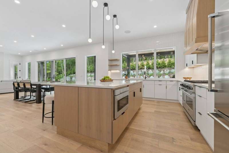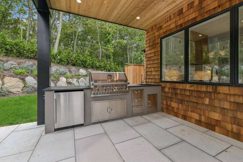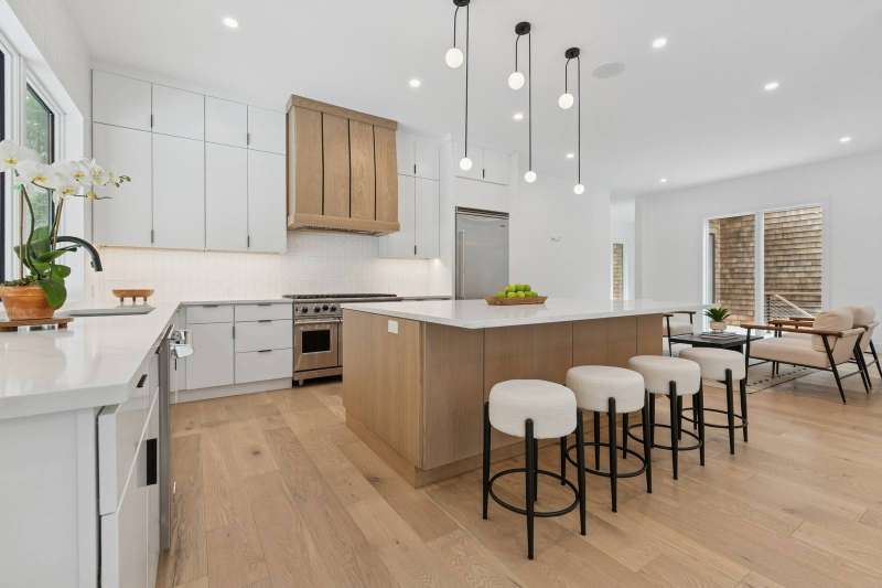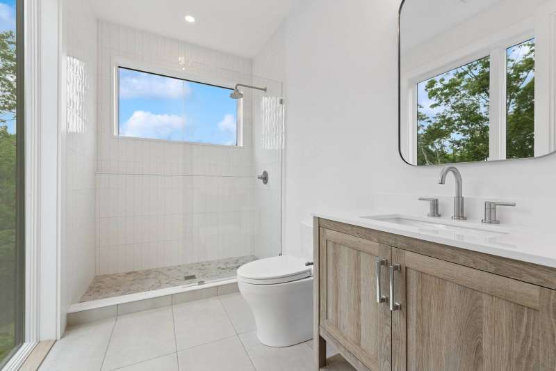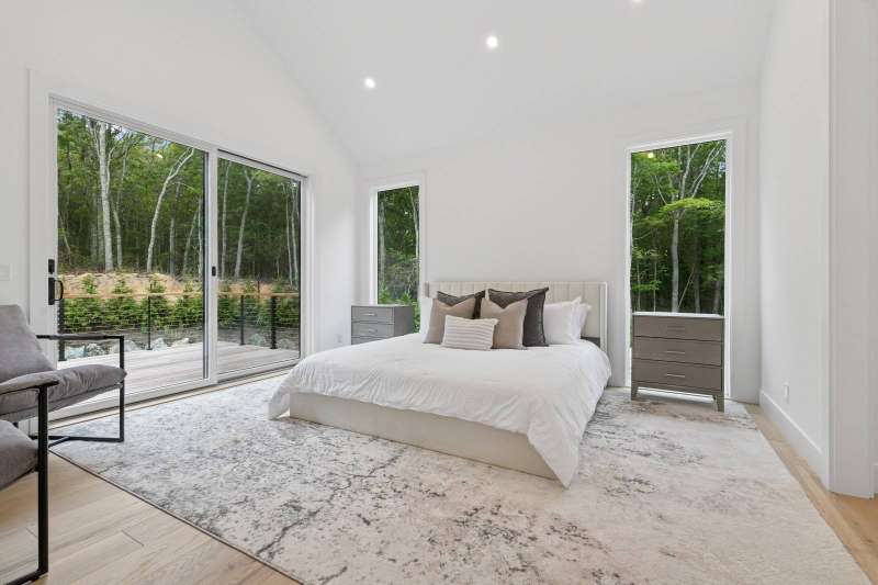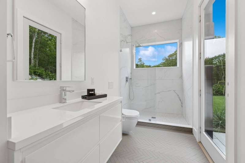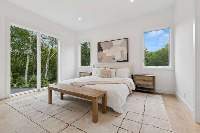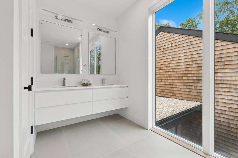 185 Old Millstone Road, Sag Harbor. New Build 6 bedroom, 5 1/2 bath Luxury Home in the Hamptons sits on 1.3 acres. This magnificent new construction, nestled in the heart of one of the Hamptons' most picturesque towns, with the most beautiful freshwater ponds and a 40-acre natural reserve, promises a blend of natural environment/sceneries, luxury and comfort just minutes from local amenities like restaurants, shops, the harbor, and beach. Spread over an acre of land, this spacious 7000+ sq ft. modern farmhouse includes a 2100 sq. ft. unfinished lower level w/ 10' ceilings, a 2183 sq. ft. first floor w/10' ceilings and a 1855 sq.ft. second floor w/ 9' ceilings. The interior is bathed in natural light, enhancing its warm touches and creating a welcoming atmosphere. The open floor plan integrates the living room with a cozy fireplace, a gourmet dining area, and a chef's kitchen equipped with high-end appliances. The five beautifully designed bedrooms, including a grand primary suite ensur
