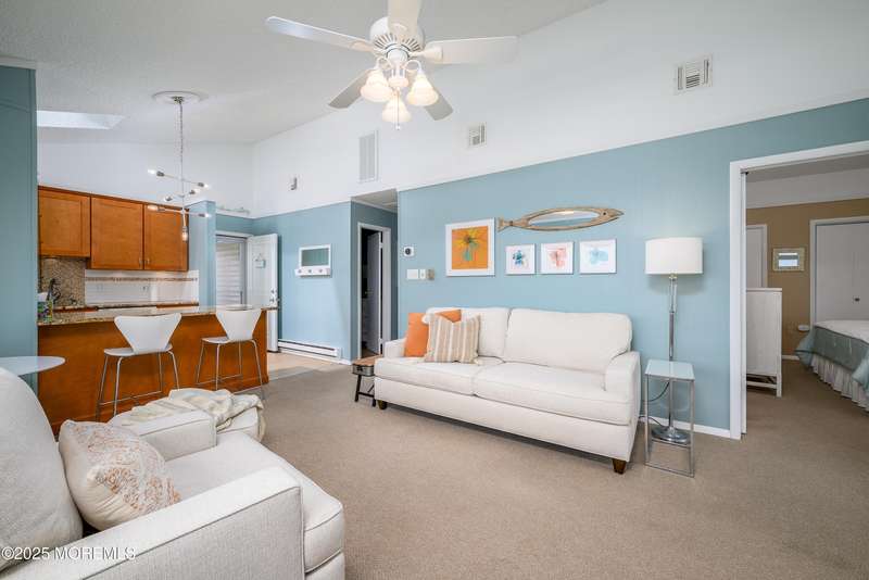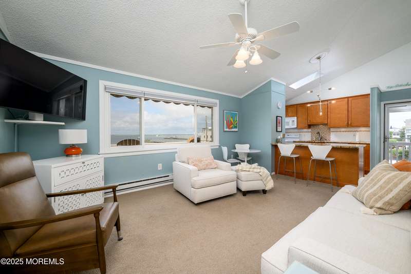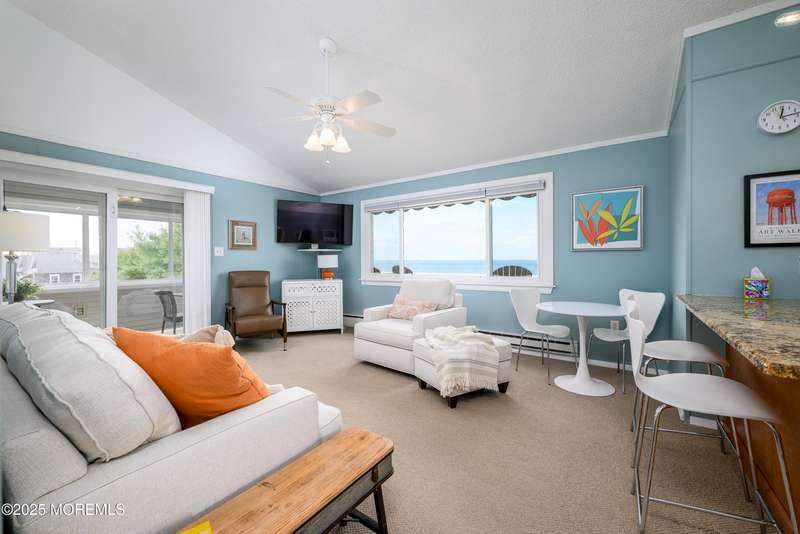 AN AMAZING VIEW of Barnegat Bay is yours when you are relaxing on the 24' x 7' deck, where the sun sets in front of you each evening. You'll also enjoy the additional 12' x 7' screened-in deck for dinner, games, or viewing the sunset. This turnkey TOP FLOOR BAYFRONT CONDO of a duplex home in the Holgate Section of LBI is on an oversized lot, has NO HOA fees other than shared insurance or agreed routine maintenance. Not only are you steps away from putting your kayak in the bay, but the property is also close to recreation space, including a tennis court, swings, and, of course, the Bay Beach. The ocean awaits you just at the top of the short street. Nicely painted and decorated, the home is move-in ready with all indoor and outdoor furniture, d cor, and kitchenware included. The home features 3 bedrooms and 2 full baths. The living room features new Bassett furniture and new carpet. The upgraded kitchen has a dishwasher, wine refrigerator, and built-in microwave. Your own washer and dryer. Ample closets as well as extra attic storage with a pull-down ladder. There's a front outside foot/full shower and storage. On the other side of the house are two large walk-in showers with dressing rooms. There's a shed for storage of bikes and other gear, as well as the large side and back yards. This home truly offers the best of LBI at this price. Less traffic, yet only a short trip to the grocery store or restaurants. The Holgate Community Association offers park barbecues, fun and games, and music events.
