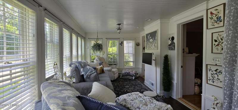 Located on a corner lot in the heart of historic Milford Borough, this meticulous, 1920 classichome is a blend of beauty, charm and modern functionality. The stunning kitchen has all brandnew stainless steel appliances, Corian counter tops, a breakfast nook, an island and two sinks.The adjoining dining room has French doors that open to the formal living room featuringbeautiful hardwood floors and a fireplace. Off the living room is a gorgeous sunroom perfect forrelaxing and entertaining. A laundry room, half bath and bonus room excellent for an office, craftroom or mud room complete the first floor. Upstairs there is a large master bedroom with ensuite, two additional bedrooms and a second full bathroom. The partially finished basement isideal for storage, office or work space. Attached to the two car garage is a space perfect for aworkshop or artist studio. The covered front porch provides plenty of room for outdoor seatingas does the back deck with its two pergolas. A white picket fence encloses the landscaped yardand private backyard. Walk to shops, art galleries and restaurants in this quaint town that is lessthan two hours from NYC. This home and location is perfect for the discerning buyer.
