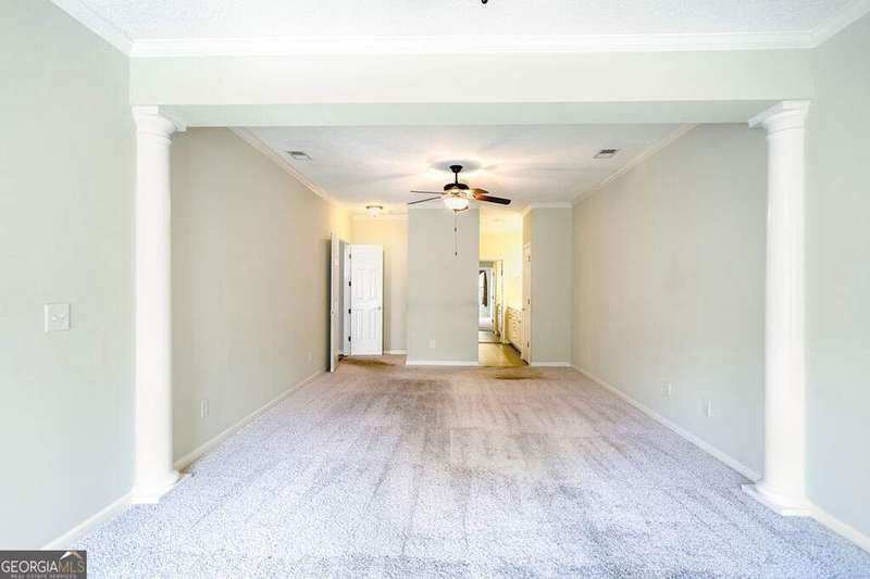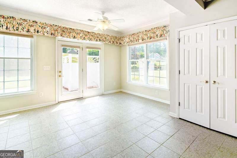 Welcome to this beautifully maintained 2-bedroom, 2-bath ranch-style home in the desirable Emory Springs neighborhood of Fayetteville, across the street from Piedmont Fayette Hospital. Offering 2,343 square feet of comfortable living space, this home features an open-concept kitchen that flows into the living room, complete with a gas fireplace-perfect for everyday living and entertaining. A separate office provides a quiet space for work or hobbies. The spacious main bedroom includes a private ensuite with a soaking tub, double vanity, separate shower, and an oversized closet. The secondary bedroom is located at the front of the home, adjacent to a full bath-ideal for guests or additional household members. Enjoy the sunroom overlooking the backyard, which leads to a serene outdoor area designed for easy maintenance. Lawn care is included in the Emory Springs community, giving you more time to enjoy the peaceful surroundings. A 2-car garage provides ample parking and storage. This home offers the perfect blend of convenience, comfort, and low-maintenance living in a prime Fayetteville location.