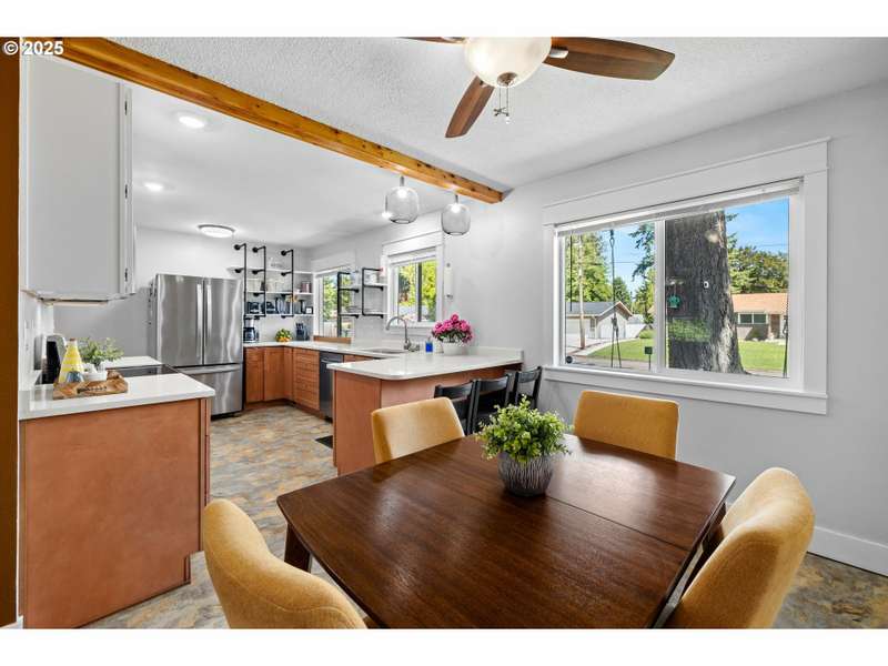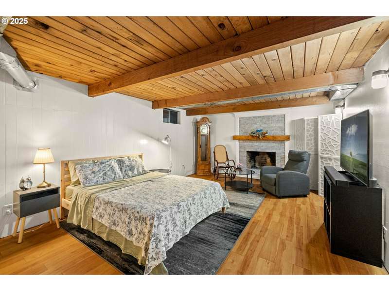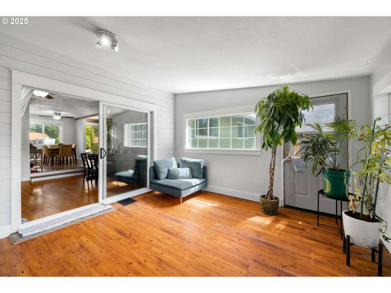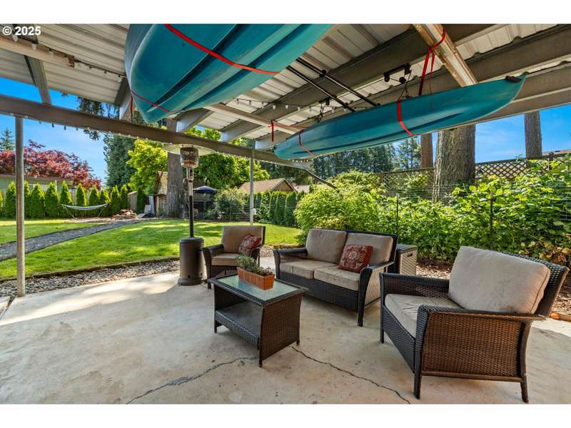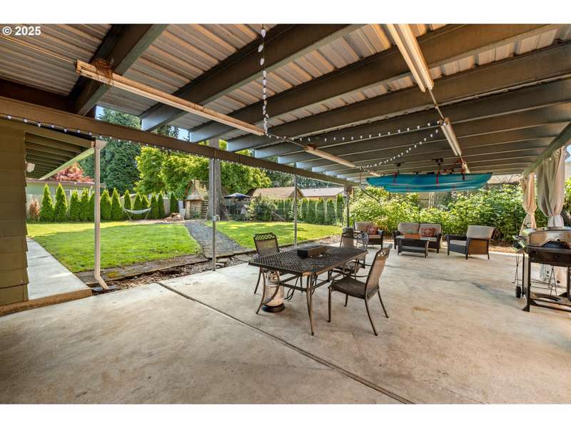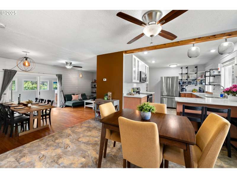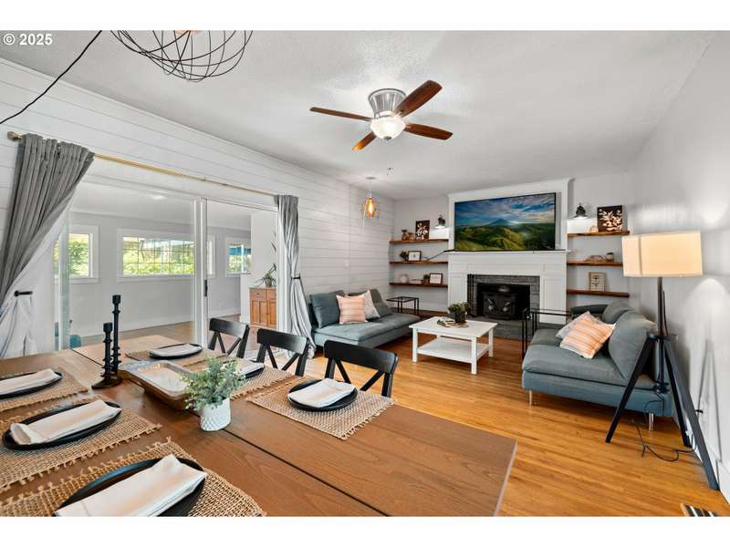 NEW PRICE!! ASK ABOUT INTEREST RATE BUY DOWN OPTION! Updated Mid-Century Modern on an over a quarter acre! This move-in ready home has been beautifully remodeled while still maintaining original hardwoods and style. Enjoy stainless steel appliances, quartz countertops and soft close cabinetry in the kitchen. Remodeled bathrooms have walk-in oversized shower in the owner's suite and second bathroom has a double sink vanity & wainscoting. Cozy up to the wood burning fireplaces in the living room and finished basement. Flex space in the basement for your office, gym, or hobbies as well as guest quarters and plenty of storage. Step into the light-filled sunroom and out to the lush backyard, complete with a charming wood shed and inviting fire pit perfect for entertaining. Don't miss the chicken pen and berry garden. The oversized covered carport (48'x18') connects to the pull through 2 car garage, offering ample parking and plenty of entertaining and storage options. No HOA! NEW 50 year roof (2023); NEW electrical panel (2022); NEW septic pump (Feb 2025); Chimneys cleaned 2024. Close to shopping, eateries, freeway access, Stockyard Village park and Salmon Creek. This is a MUST SEE! Schedule your tour today!