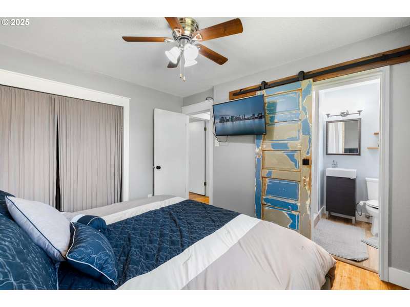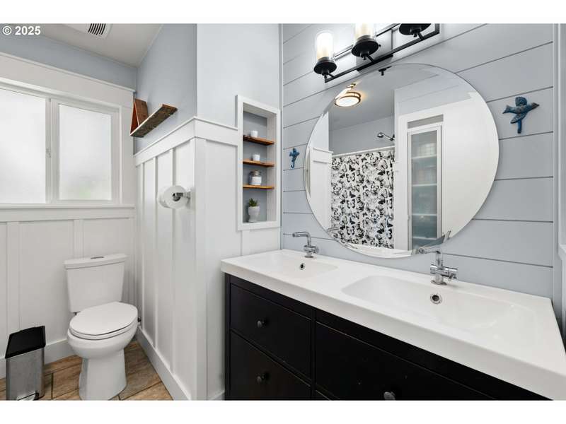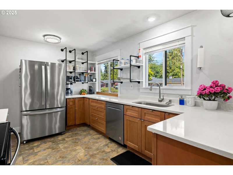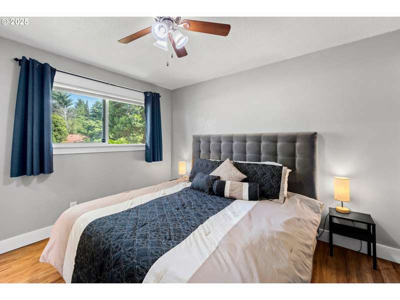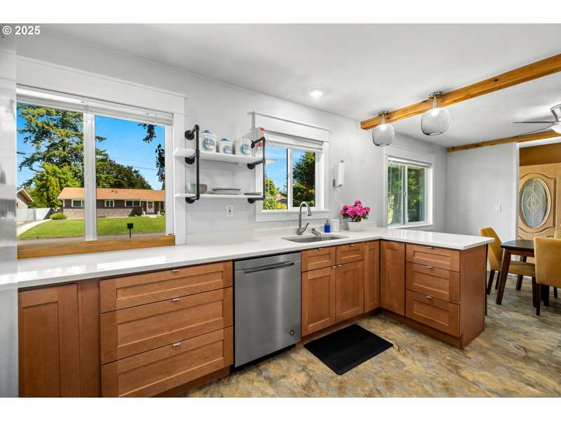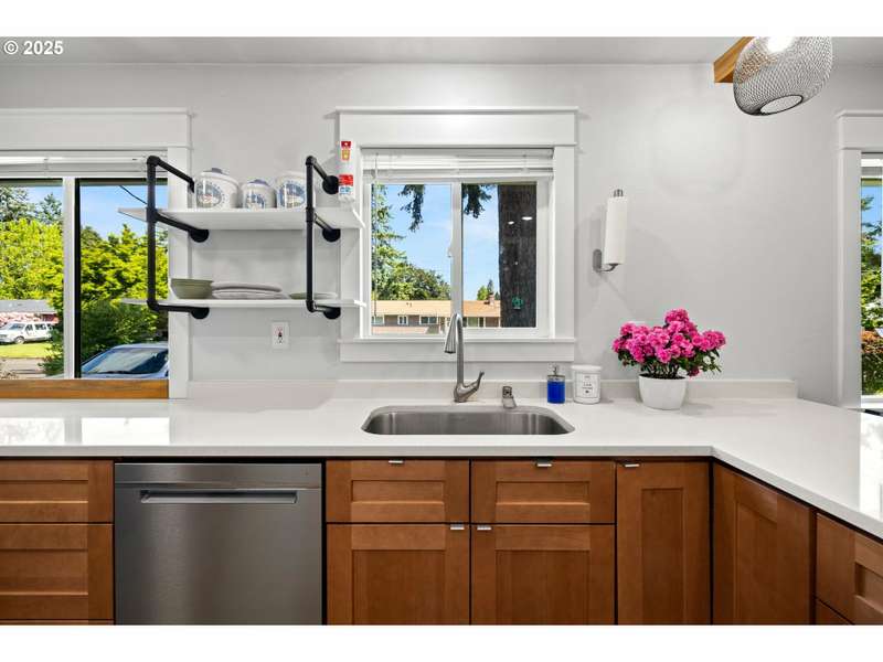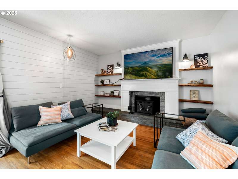 NEW PRICE!! ASK ABOUT INTEREST RATE BUY DOWN OPTION! Updated Mid-Century Modern on an over a quarter acre! This move-in ready home has been beautifully remodeled while still maintaining original hardwoods and style. Enjoy stainless steel appliances, quartz countertops and soft close cabinetry in the kitchen. Remodeled bathrooms have walk-in oversized shower in the owner's suite and second bathroom has a double sink vanity & wainscoting. Cozy up to the wood burning fireplaces in the living room and finished basement. Flex space in the basement for your office, gym, or hobbies as well as guest quarters and plenty of storage. Step into the light-filled sunroom and out to the lush backyard, complete with a charming wood shed and inviting fire pit perfect for entertaining. Don't miss the chicken pen and berry garden. The oversized covered carport (48'x18') connects to the pull through 2 car garage, offering ample parking and plenty of entertaining and storage options. No HOA! NEW 50 year roof (2023); NEW electrical panel (2022); NEW septic pump (Feb 2025); Chimneys cleaned 2024. Close to shopping, eateries, freeway access, Stockyard Village park and Salmon Creek. This is a MUST SEE! Schedule your tour today!