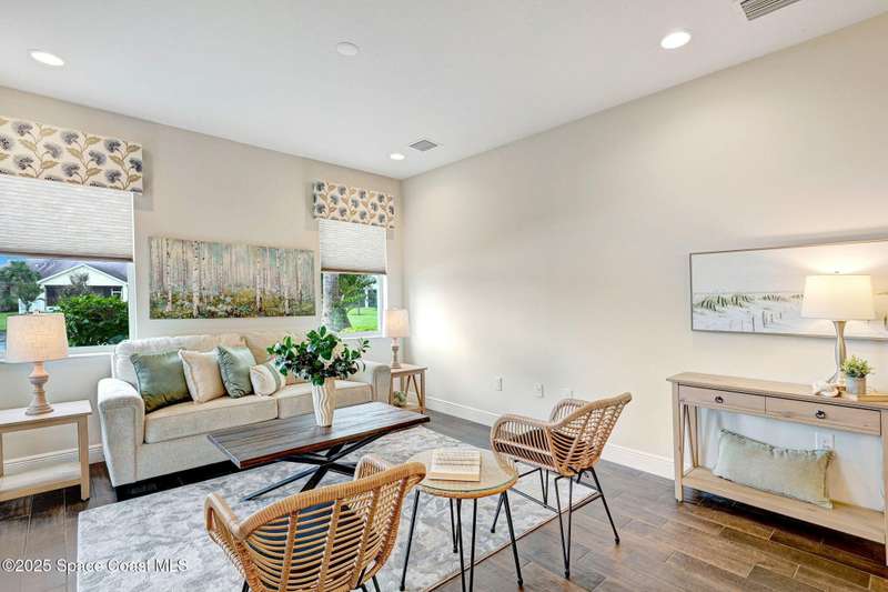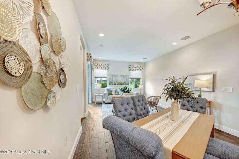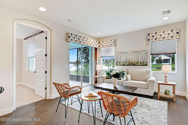 Skip the construction dust and move right into this beautifully upgraded duplex. Offering peaceful lake views, a private side yard, and an open layout, this 3BD/2BA home delivers the perfect blend of modern design and low-maintenance living, without the wait or added costs of new construction. Inside, you'll find luxury wood look tile flooring, high ceilings, and a spacious kitchen with 42'' cabinets, granite counters, and stainless-steel appliances. The split-bedroom layout gives everyone space to spread out, while the primary suite offers a serene retreat with a walk-in closet and spa-style shower. Enjoy your morning coffee or evening glass of wine on the screened lanai overlooking the water. It's a peaceful backdrop you'll never get tired of. Because it's an end-unit, you'll also appreciate the extra windows, privacy, and green space that most neighboring homes can't offer. HOA dues cover lawn care, exterior maintenance, and access to the Addison Village Club amenities.