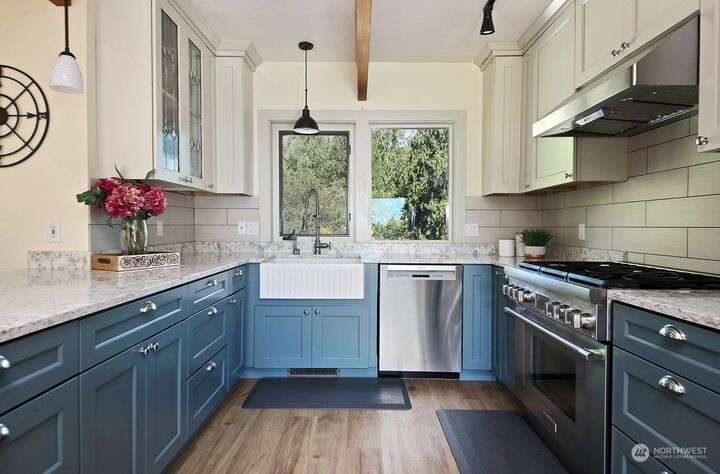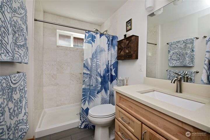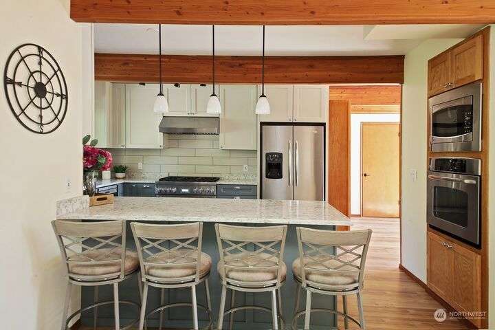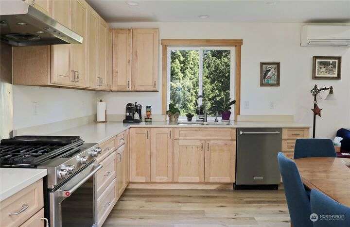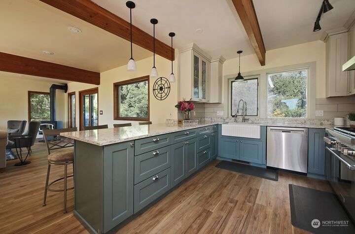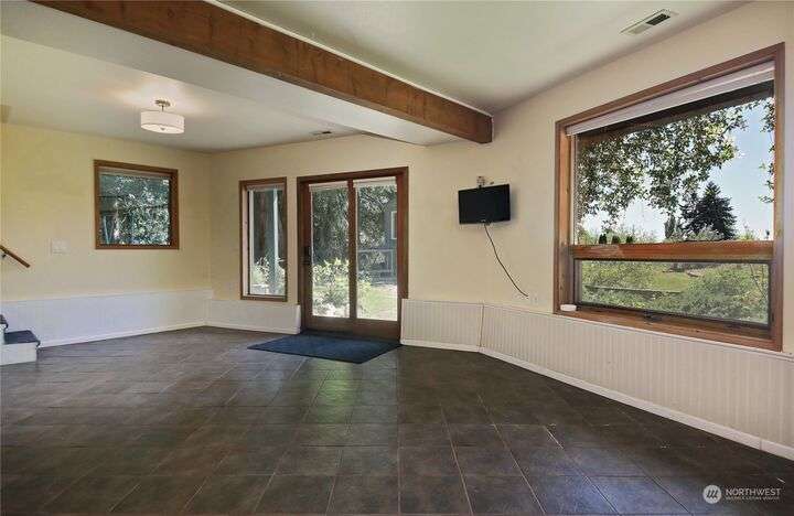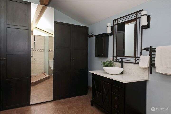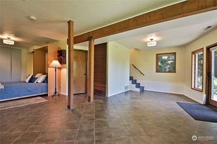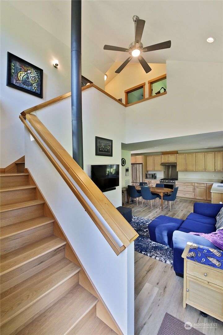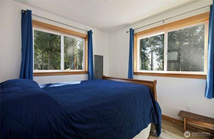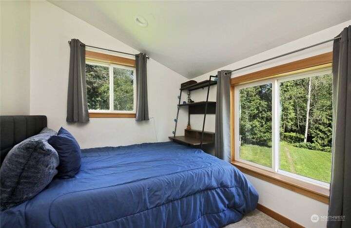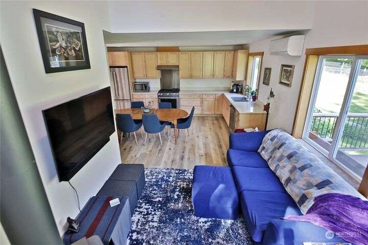 Two separate beautiful homes set on a stunning Whidbey property close to Double Bluff Beach. Short term rent one, live in the other. The main home, a Contemporary Lindal Cedar home, Mt. Rainier and City views from every window & true wrap around deck. The spacious main floor boasts a tastefully renovated kitchen, floor to ceiling windows, great room with wood stove, dining area w/vaulted ceilings and an office. Upstairs is a primary suite, 2 bedrooms, + flex area. A separate suite below w/ full bath & private entrance. The Cottage, A 2018 built 3bd, 2 bath, 1000+/-sf custom DADU is placed in the sun next to the custom 2 stall barn w/ loft. Mature cedars, orchards, trails, all placed thoughtfully on the beautifully wooded acres 5± acres.