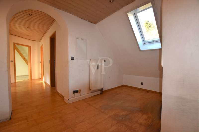 This spacious 3.5-room top-floor apartment offers an idyllic living atmosphere in the midst of a natural environment. It is located in a well-kept two-family house and thus offers a quiet living environment in a small community of owners. The property is located on the outskirts of the village with unobstructed views of the Mettlachtal valley. The well thought-out room layout ensures a comfortable living experience. The spacious living area impresses with plenty of natural light and a wonderful view of the countryside. The spacious kitchen with dining area invites you to cook and linger together. Two daylight bathrooms offer a high level of living comfort - ideal for families or couples with space requirements. The apartment also has a large bedroom and two rooms that can be used flexibly as a children's room, guest room or study. Particularly noteworthy is the covered west-facing balcony, which invites you to spend relaxing hours with a view of the natural surroundings. A special highlight is the direct access to the associated, insulated attic, which offers additional storage space. There is also a storage space in the cellar and a parking space in the garage. The oil-fired central heating from 2014 in combination with a solar system ensures an efficient and sustainable energy supply. This well-kept top-floor apartment combines tranquillity, living comfort and a fantastic view - perfect for anyone who loves nature. There is also the option to purchase the approx. 920 m² plot behind the house as a garden or building plot. Further development with a residential building is possible in accordance with § 34 BauGB neighborhood development. See this special offer for yourself and arrange a viewing today. We look forward to seeing you!