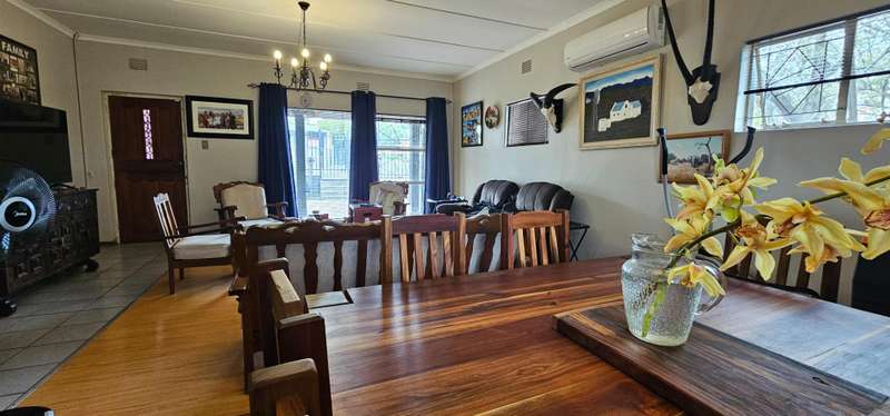 Spacious 3-Bedroom Home with Pool ?Çô Ideal for Living or Business This versatile 3-bedroom, 2-bathroom home combines comfort with potential. Enjoy open-plan living with air conditioning, a modern ?Çïrenovated kitchen with?Çï large laundry?Çï/scullery area and a main bedroom featuring an en-suite with a large shower. A covered stoep overlooks the lawn and sparkling pool?Çöperfect for relaxing or entertaining. Conveniently located near the new mall, with a garage, carport and excellent potential for residential or business use.?Çï An investment opportunity not to be missed!