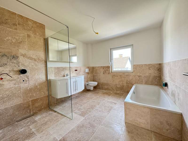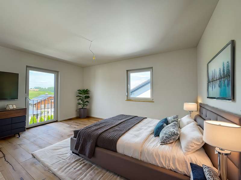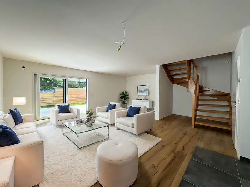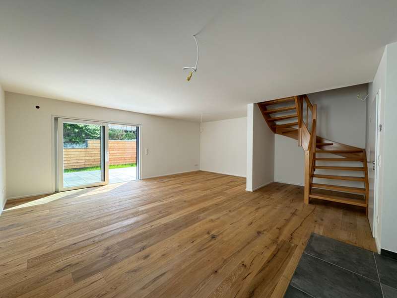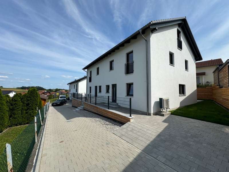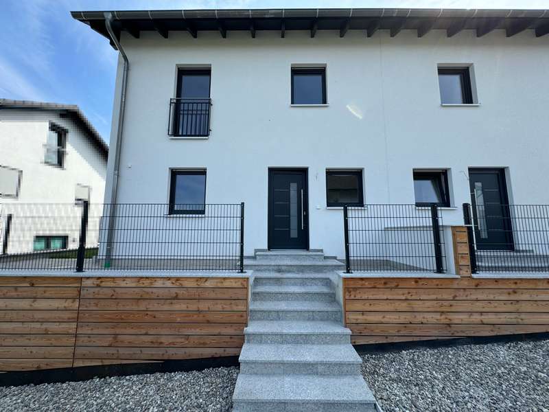 In an absolutely quiet and family-friendly residential area on a slightly sloping plot in Stefanskirchen - a district of Ampfing - these two modern and high-quality semi-detached houses are being built as partial extensions! Here, the future owners can realize their dream of owning their own home individually and affordably with a manageable amount of personal contribution. The houses will be built in an architecturally appealing and energy-efficient manner using modern timber frame construction as an efficiency house 55. The large window areas on all floors (especially to the south), the well thought-out room layout and the efficient underfloor heating (heat pump) ensure a cozy and comfortable living environment in your new home. The first floor of the semi-detached house impresses with its open and friendly floor plan. The entrance area contains the guest WC, the hallway with ample space for your wardrobe and access to the utility room. The central focal point of this property is the almost 38 m² cooking, dining and living area with access to the sunny terraces. A high-quality solid wooden staircase leads to the upper floor, where there are three bedrooms and the family bathroom. The space on offer is rounded off by the approx. 23 m² attic studio with a large dormer window, which provides plenty of natural light and a feel-good atmosphere on this floor. The price includes the double carport with space for two cars, Own work includes the following work: Tiling and floor coverings, filling and painting work inside, sanitary installation (the raw installation including shower tray and bathtub is included in the price), doors and frames inside as well as the paving work and terrace design outside. The quiet location in a pleasant neighborhood combined with a short distance to the freeway round off your new feel-good home perfectly. Construction is scheduled to start in November 2023 and be completed in spring 2024. ***The energy requirement certificate is currently being drawn up*** Take a look at all the details and the potential of this modern new-build property for yourself and arrange a non-binding consultation with us. You will receive a detailed description of the construction and services after contacting us.