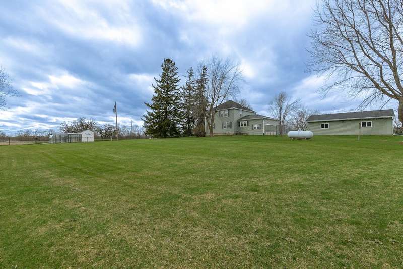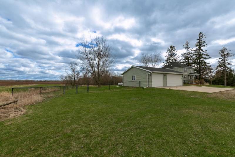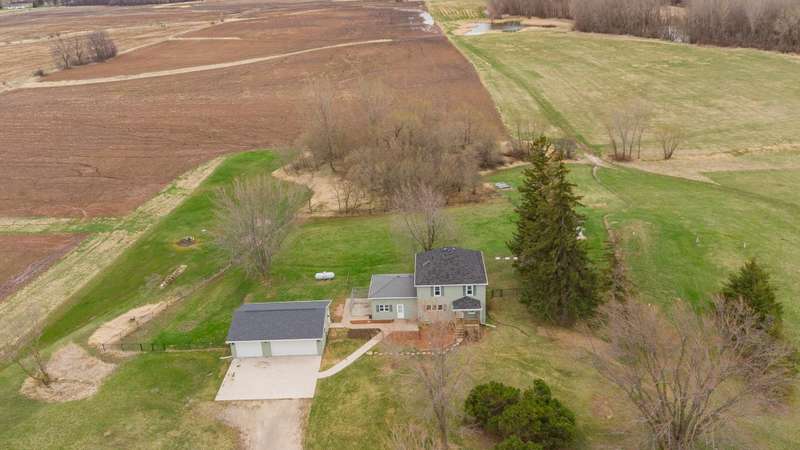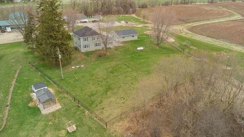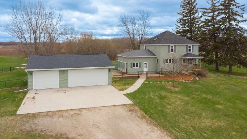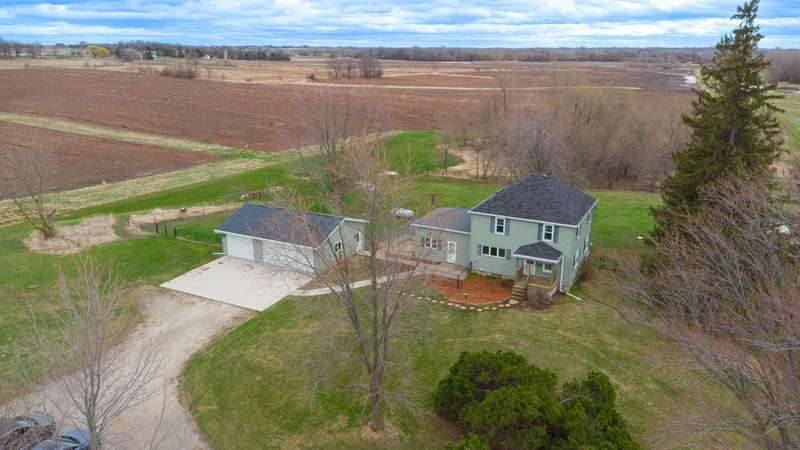 Escape to country living in this charming 4-BR, 1.5-BA home on 40 acres! This 2 story, farmhouse offers original hardwood floors, dream kitchen w island, new appliances, updated electrical/HVAC & a new instant hot water heater! Main floor offers 1st floor laundry, mud/flex room as well as a den/craft/5th BR space. Enjoy fenced in yard, outdoor dog kennels, 8x8 chicken coop (8x16 run w heater) & 5 nesting boxes, 3 raised garden beds and firepit. Ripe for the harvest w 2 peach trees, blackberry, raspberry and black raspberry bushes plus River Grapes that taste like Concords! Outdoor living includes a serene pond, 1st grade tillable acreage, and woods for exploring or hunting. 4 deer stands included New Mound in 2023. This is the perfect blend of comfort, self-sufficiency, and space to roam!