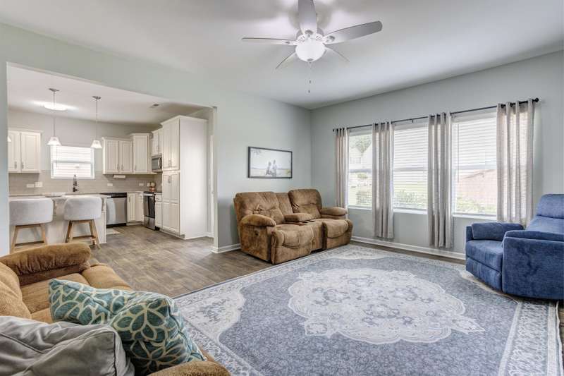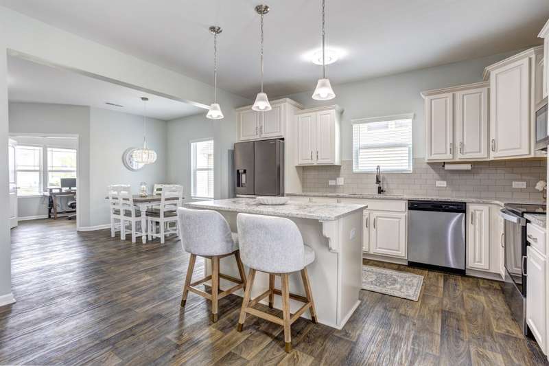 5K in Seller paid closing costs offered. Welcome to this beautifully maintained 3-bedroom, 2.5-bath home built in 2021, nestled in desirable Haven at Rocky River community. This popular Hudson plan offers modern comfort with a thoughtfully designed open floor plan, ideal for both everyday living and entertaining. The main floor features a spacious kitchen with ample counter space, seamlessly flowing into a large family room. A dedicated office provides a quiet workspace or flexible room to suit your needs. Entire home was painted less than a year ago. Upstairs, the primary suite is a true retreat, complete with a seating area, a luxurious garden tub, and a large walk-in closet. Two additional bedrooms, a convenient laundry room, and loft provide plenty of extra space. The oversized two-car garage, enhanced with installed storage racks and a slat wall system, offers organization and utility. Located close to everything, this home combines modern living and functionality.