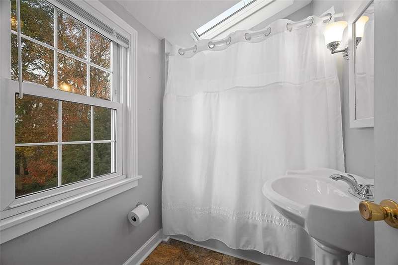 Brick Cape Cod charm meets everyday convenience in this centrally located Bethel Park home. Spacious LR welcomes you with crown molding, classic brick fireplace & distinctive 5' peaked doorway leading to the open concept kitchen/DR with HW, ample cabinetry & counter space plus separate baking/coffee station. Sunny sunken den featuring exposed brick & sliding doors that open to the deck - perfect home office, playroom - so much potential! Two sun-filled 2nd level bedrooms offer vaulted ceilings & generous closet space - the 2nd bedroom showcases exposed hardwoods. Refreshed hall bath with vaulted ceiling & skylight serves both rooms. The walk-out lower level adds exceptional flexibility with 11x5 mudroom/drop zone, roomy gamerm, full bath & laundry - this flex space could easily serve as an addl BR/guest suite/home gym. Outside, enjoy a large, flat yard with a peaceful woodsy view - ideal for relaxation or play. A warm and inviting home ready to welcome its next chapter.