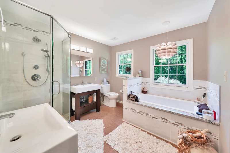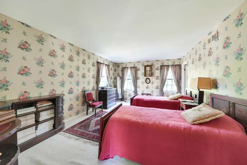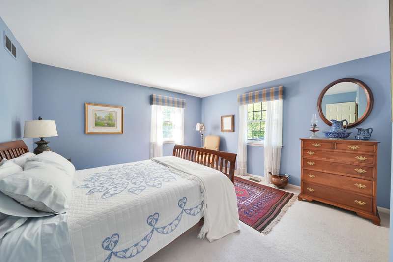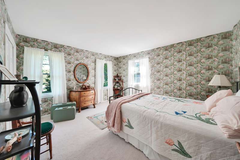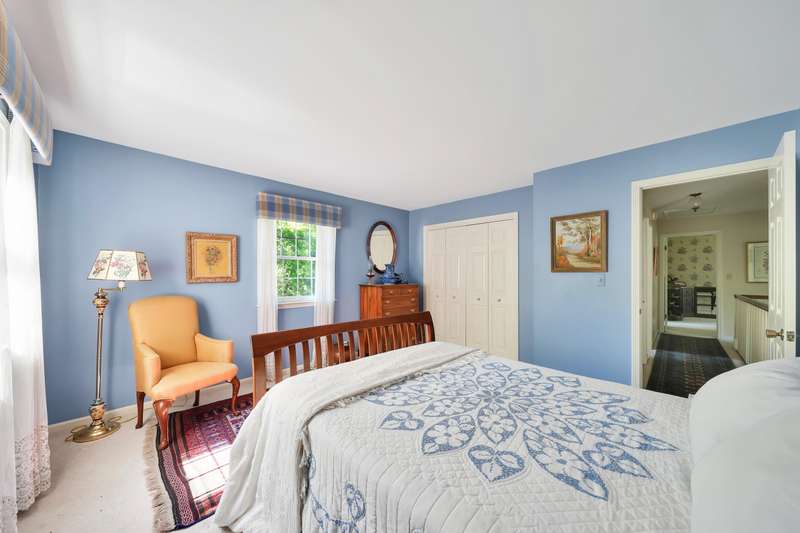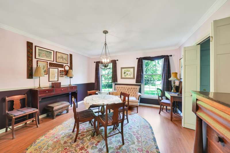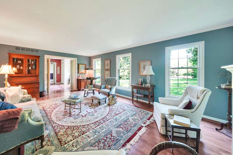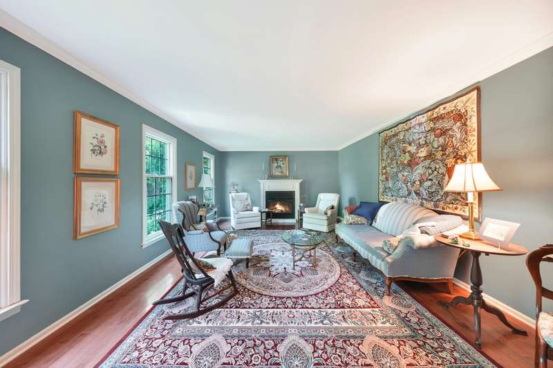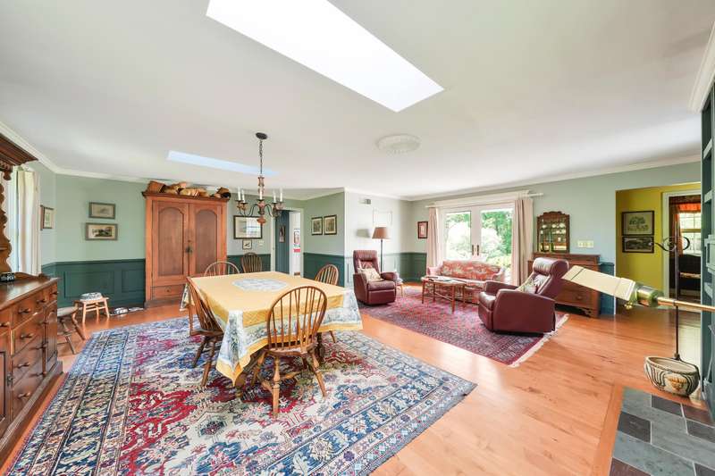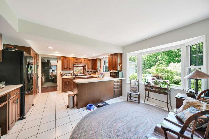 This charming, spacious two story home sits on 2.5 partially wooded acres at the end of a peaceful cul-de-sac, offering the perfect blend of privacy and tranquility. 4 to 5 bedrooms, 4 bathrooms and over 3200 sq.ft of living space, this home is ideal for families or anyone seeking room to grow and unwind in a beautiful country setting. Step inside to a welcoming open foyer that leads to an airy, light-filled layout. Multiple living spaces on the main floor include the spacious eat-in kitchen featuring a pantry with roll-out shelving, built-in oven and rangetop and ample counter space. The living room boasts a ventless fireplace, adding warmth and charm to this space. This room can also be converted into a main floor bedroom. The den/office is complete with custom built-in bookcases and a wood-burning fireplace-perfect for remote work or a quiet retreat. The expansive sunroom with skylights and 2 sliding glass doors that lead out to a wrap-around deck is ideal for enjoying morning coffee, entertaining, or soaking in the peaceful, scenic views through the palladian window. Other main floor rooms include a formal dining room, family room w/ventless FP, finished laundry room, 3/4 and 1/2 bath. Upstairs you will find 3 spacious bedrooms, one of which has an adjacent room that can be used as a nursery, playroom, office or private retreat. The primary bedroom has an attached private bath and large walk-in-closet. Another full bath on this level provides for convenience for family and guests. Additional highlights include an unfinished basement, 3-car garage, and abundant storage thruout the home. NEW ROOF INSTALLED JUNE, 2025. The front and back yards are beautifully landscaped, surrounded by mature foliage and trees that provide a stunning backdrop thruout the seasons. Don't miss this rare opportunity to own a private, serene retreat with all the space and features you need - just minutes from town conveniences and schools. Schedule your showing today!!