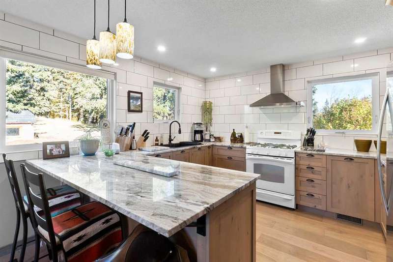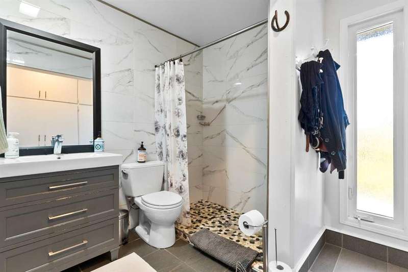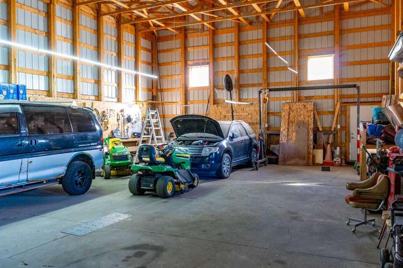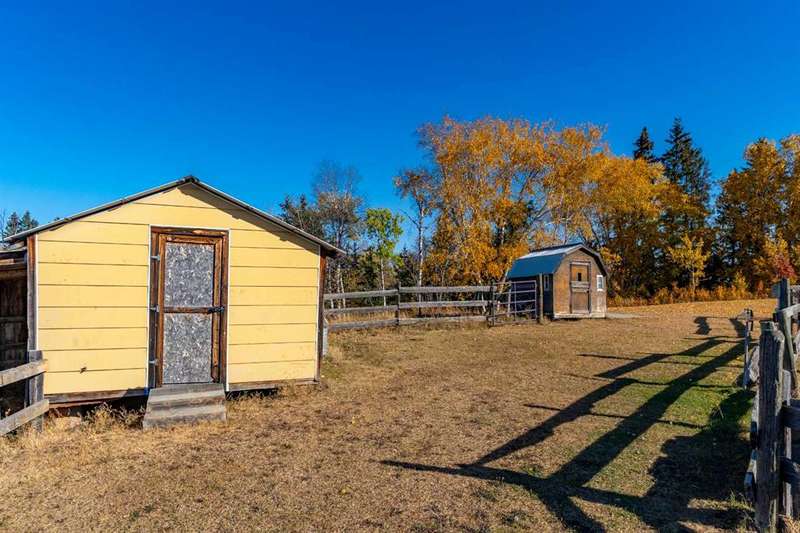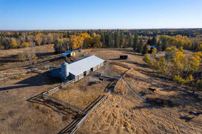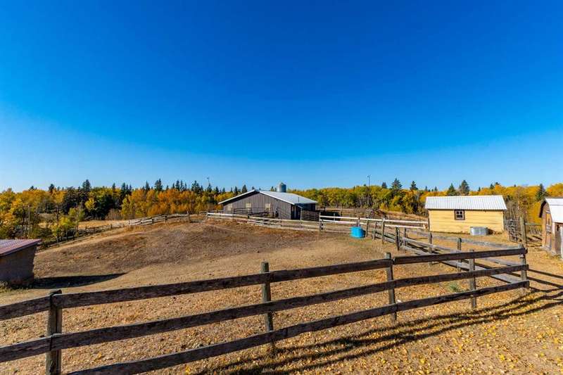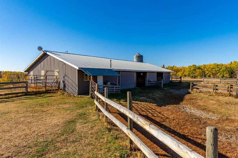Welcome to this exceptional 52-acre property, a rare find for those seeking privacy, space, and the perfect setup for country living. Zoned Agriculture and located just 8 minutes off Highway QE2, this property offers a peaceful retreat with all the conveniences of modern upgrades and easy access to nearby cities — only 50 minutes to Calgary and 35 minutes to Red Deer. The main home is a spacious five-bedroom residence, ideal for a large family or hosting guests. Beautifully updated kitchen featuring Knotty Alder cabinetry and granite countertops. Recent mechanical upgrades include a newer forced-air furnace, upgraded hot water heater, electrical panel, submersible well pump, and water treatment system, ensuring comfort and peace of mind. Privately tucked away from the main home is a second residence, perfect for rental income or extended family. This well-maintained 3-bedroom modular home with an addition and large deck has also been upgraded with twin furnaces, electrical panel, water heater, and its own submersible well pump. With separate utilities including septic, power, gas, and water, it offers independence and privacy for its occupants. For the horse enthusiast, this property is truly a dream. The 32’ x 72’ barn is fully equipped with stalls, a tack room, 6 pens 4 stalls, outdoor pens, water, and power. The land is gently rolling with green pasture, walking paths, camping setup with power and approximately 30% treed, offering both beauty and functionality. The property is fully fenced and cross-fenced, ideal for livestock or horses. Additional features include a 49.5’ x 57.5’ shop with two 220V power panels, water hookups, and the potential to develop a living space or workshop with a ached 16’ x 49.5’ covered carport. Numerous sheds throughout the property provide ample space for equipment, tools, or small animals. Enjoy the peace and quiet of country living with outdoor recreation just minutes away — including Glennifer Lake, only 20 minutes away, and the Little Red Deer River just down the road. Paved access right to the driveway and a house set well back from the highway make this an ideal location to call home. This is more than just a property — it’s a lifestyle. Don’t miss your opportunity to own this beautifully maintained and versatile piece of west country ranch land. Directions: West of Bowden AB on Hwy 587 for 6 miles(10KM) . Turn into Driveway North side road #10. Follow driveway to right.