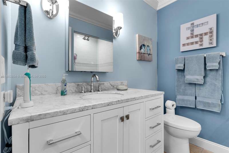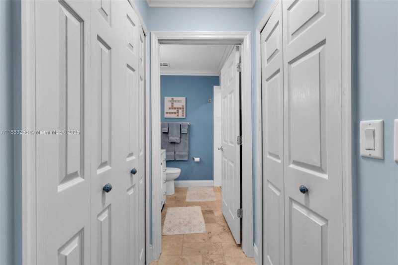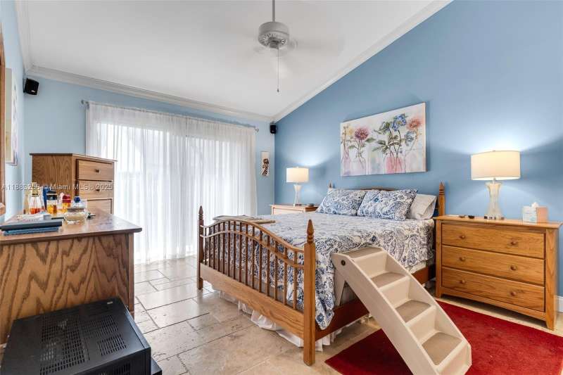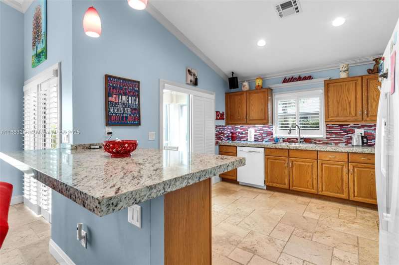 Welcome to this charming single-family home featuring 2 spacious bedrooms, 2 full bathrooms, and a 1-car garage. Kitchen, oak cabinets, island like peninsula, granite countertops, glass top stove, kitchen recessed lights, cabinet lights, beautiful crown molding throughout the entire house, Travertine stone floors, entrance front screen porch. (Huge Saving) Hague water softener. Whole-House plumbing updated-No polybutylene pipes remains. Popcorn ceiling removed-smooth ceiling & walls now.Hurricane Shutters-whole house