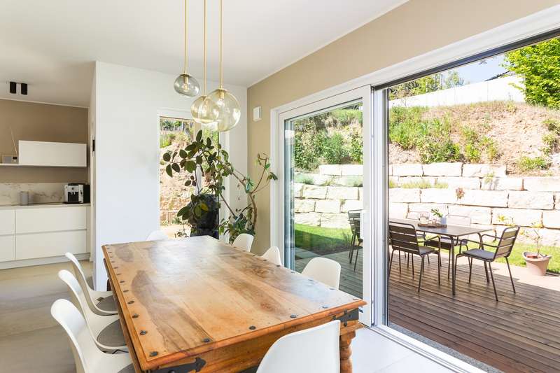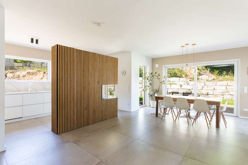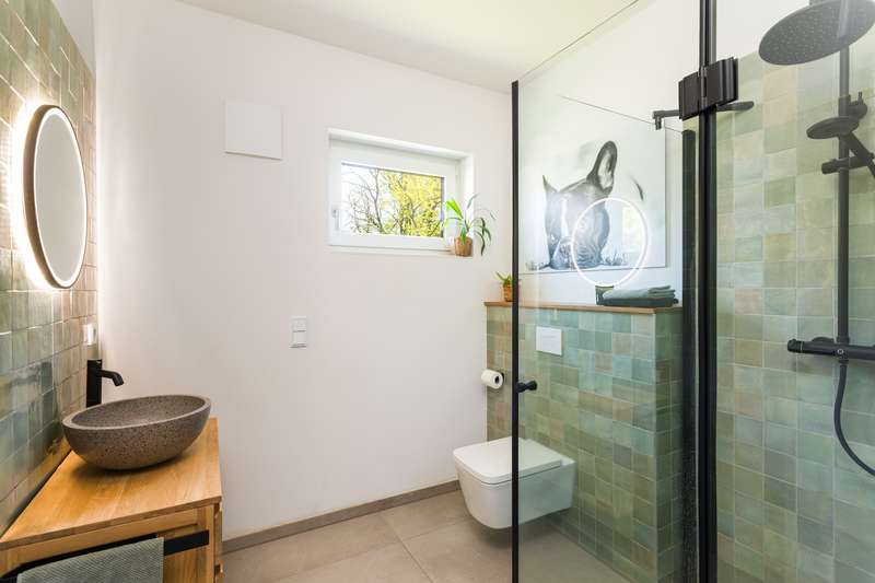 With a living space of around 130 m², this as-new bungalow built in 2022 offers plenty of space for families or older couples. The property is situated on a generous plot of approx. 699 m² and impresses with its well thought-out room layout and high-quality fittings. The bungalow has a total of four rooms, including three good-sized bedrooms. The two bathrooms are tastefully and modernly designed. The full bathroom with free-standing bathtub invites you to relax. The spacious living area features an elegant room divider with an integrated ethanol fireplace. The open, modern fitted kitchen is equipped with high-quality appliances and ceramic worktops and harmonizes perfectly with the spacious living and dining area. The kitchen has direct access to one of the 3 adjoining terraces. Efficient underfloor heating, which is operated by a modern air/heat pump, ensures comfortable living. The large-format tiles in the living area are practical to use and create a clean, modern look. The bedrooms are fitted with oak parquet flooring. Technical highlights include electric aluminium shutters and a decentralized ventilation system that ensures a healthy indoor climate. LAN cabling ensures connectivity in all living areas. The walk-in attic offers plenty of storage space. The outdoor areas are elaborately designed and terraced with natural stone blocks (Jura stones). Lovingly landscaped plantings provide a Mediterranean flair. A spacious wooden terrace invites you to spend relaxing hours outdoors. The two covered terraces offer protection from the sun or bad weather. Car parking spaces have been prepared next to the house, offering space for 2 to 3 cars and still leaving room for individual design. The quiet residential area offers a high recreational value, ideal for families and older couples looking for a retreat away from the hustle and bustle of everyday life. Schools and shopping facilities can be reached in the nearby neighboring towns of Werder (Havel), Caputh and Seddin and offer a practical infrastructure for daily needs. The daycare center in Ferch is within walking distance. The good connections to the surrounding highways also make it easy to reach other destinations in the area. This bungalow combines modern living with natural surroundings and is therefore an interesting option for anyone looking for a new home with high-quality furnishings and a convenient location. The property is in as-new condition, which makes it easy to move in quickly.