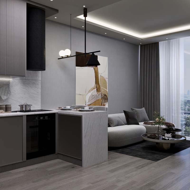 The apartments have open-plan or separate-plan kitchen options. The stylish apartments are equipped with rich features such as a built-in set, large windows, laminate and ceramic flooring, a central satellite system, and a shower cabin.