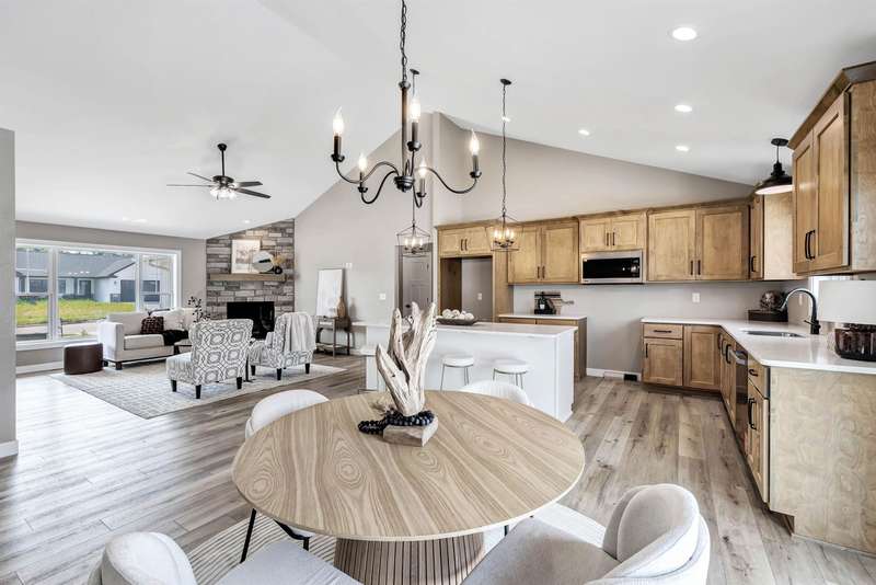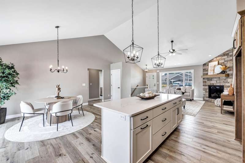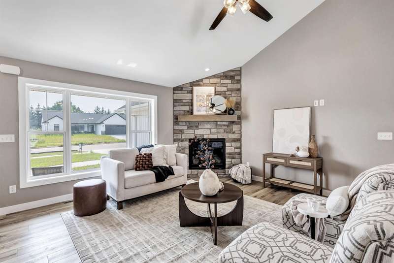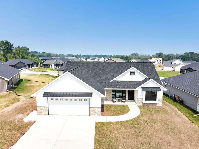 This beautifully designed new construction home built by Tom Berceau Construction offers modern comfort and style in the desirable West De Pere Area! With 1699 sq ft of living space, this open concept ranch features 3 spacious bedrooms, 2 bathrooms & a 2.5 stall attached-finished garage. Impressive kitchen features quartz countertops, soft close drawers, large center island, & generous size pantry. Cozy gas FP with stone surround and open staircase to LL compliment the great-room. Maser-suite offers a trey ceiling, double sink vanity w/ walk in shower & quartz countertops. Step outside to the back patio, great for hosting gatherings or relaxing in your outdoor retreat. Egress window for future expansion.